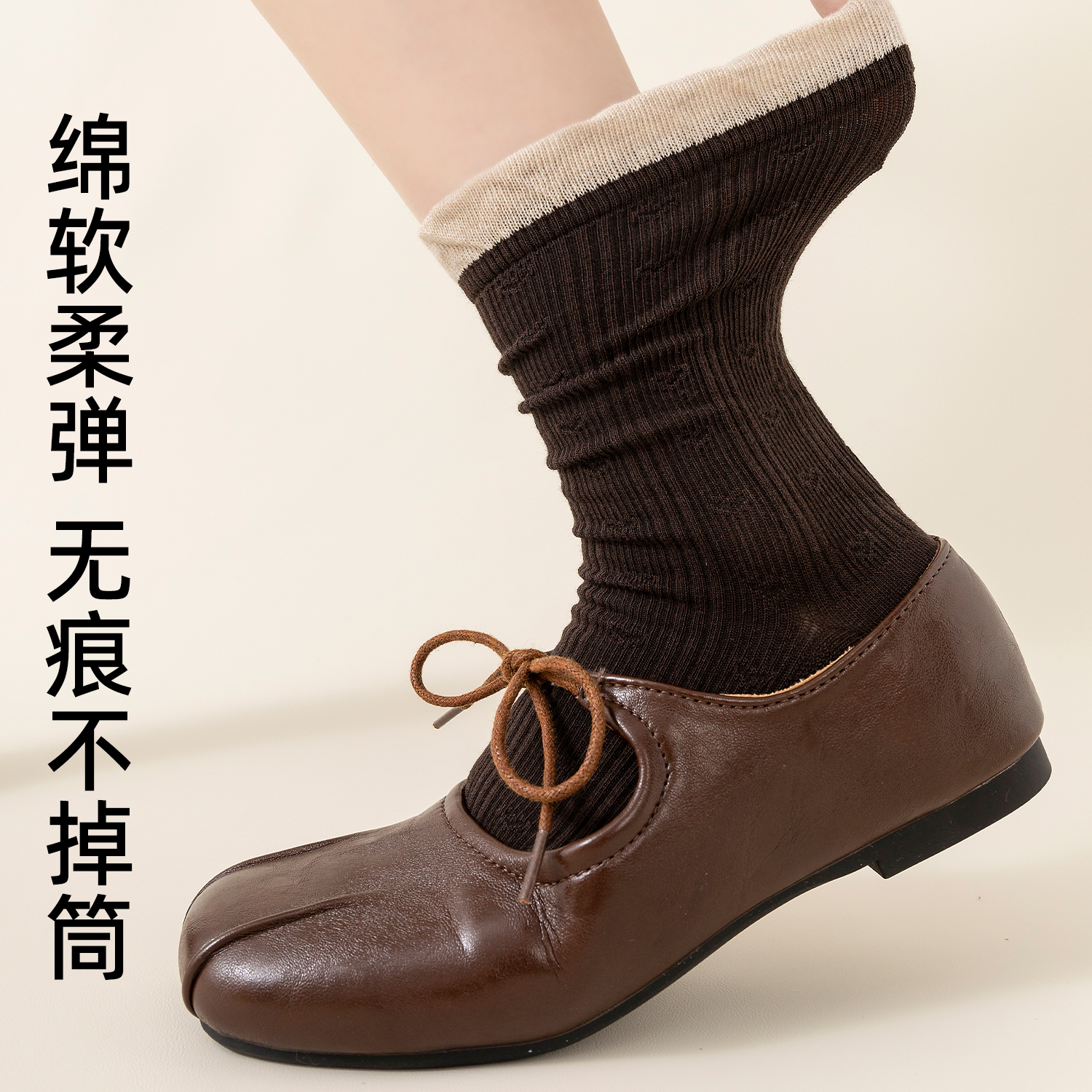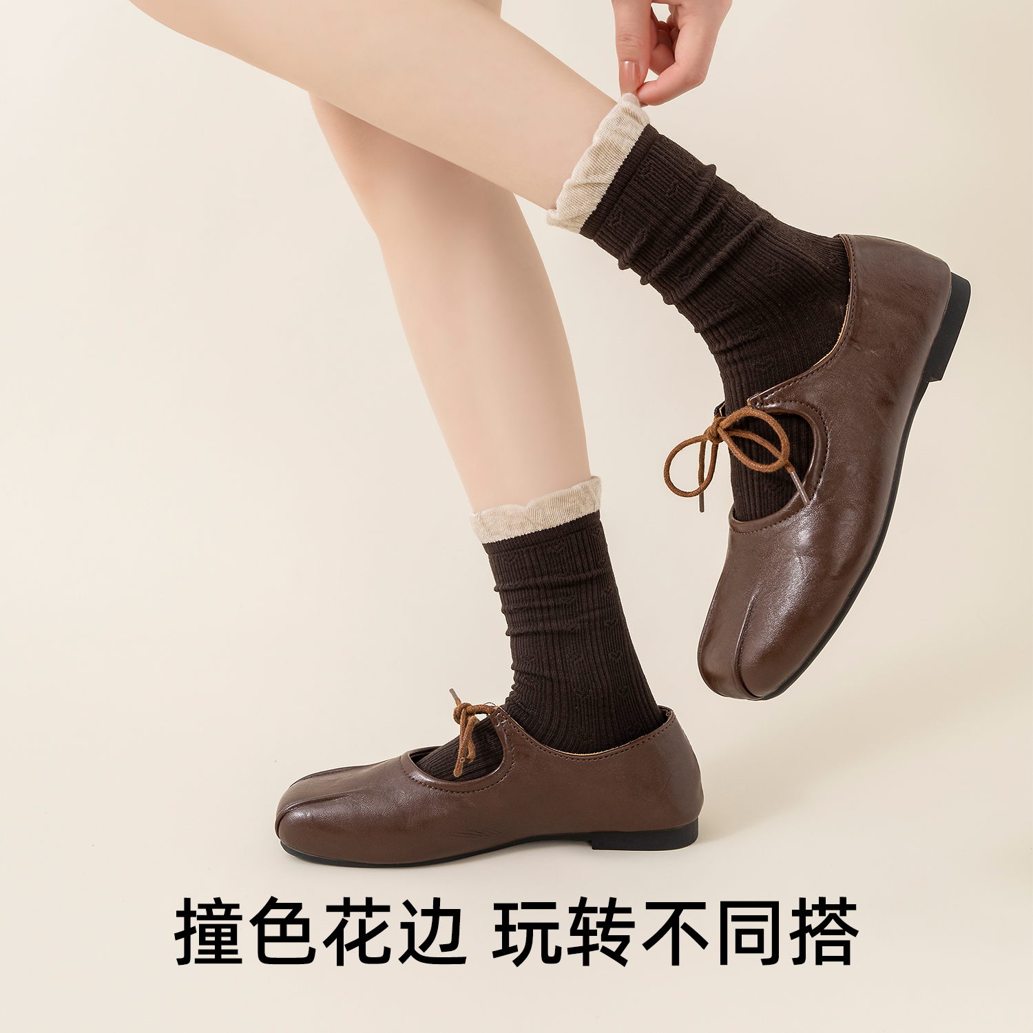 花边袜子女春秋款 纯棉中筒袜 长袜咖色堆堆袜复古学院风搭配小皮鞋