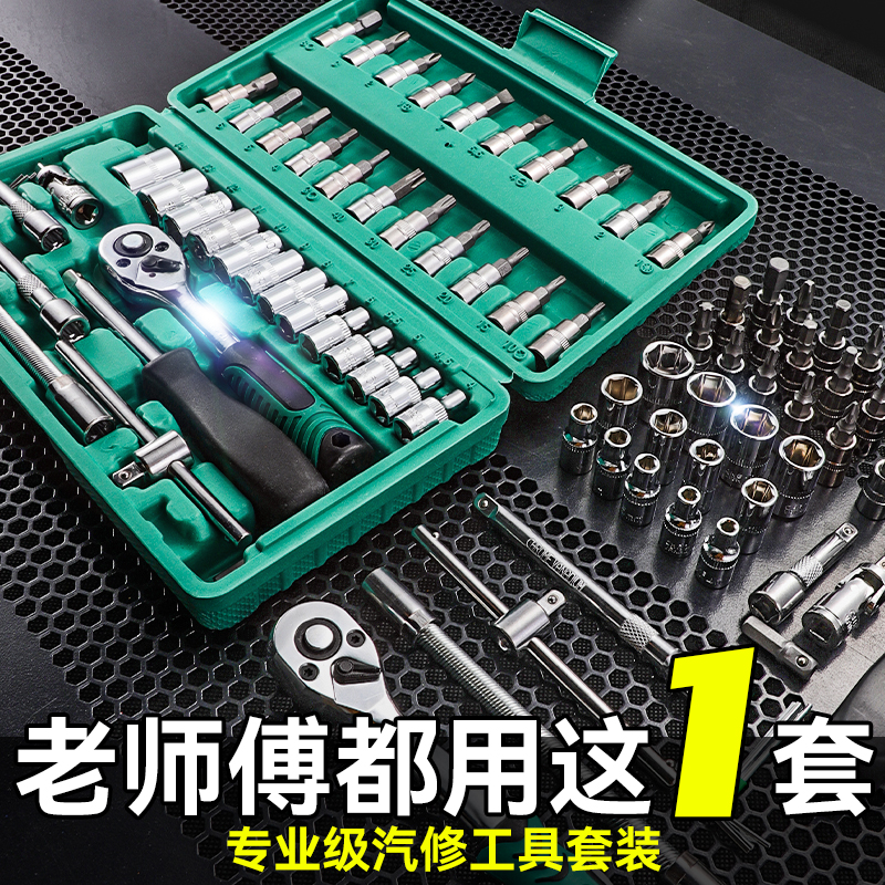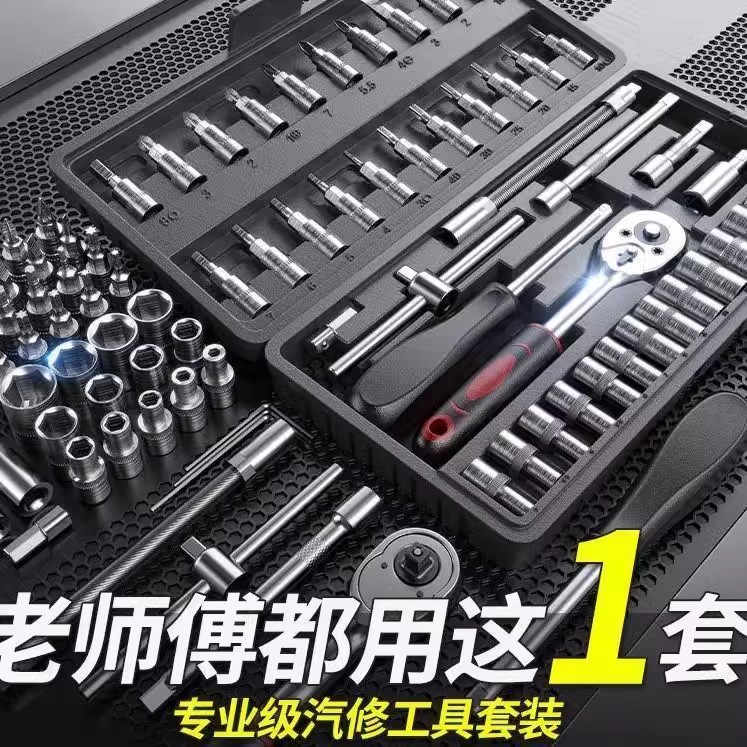 工具五金套筒组套棘轮扳手定 4汽车维修53件套通用汽修组合套装