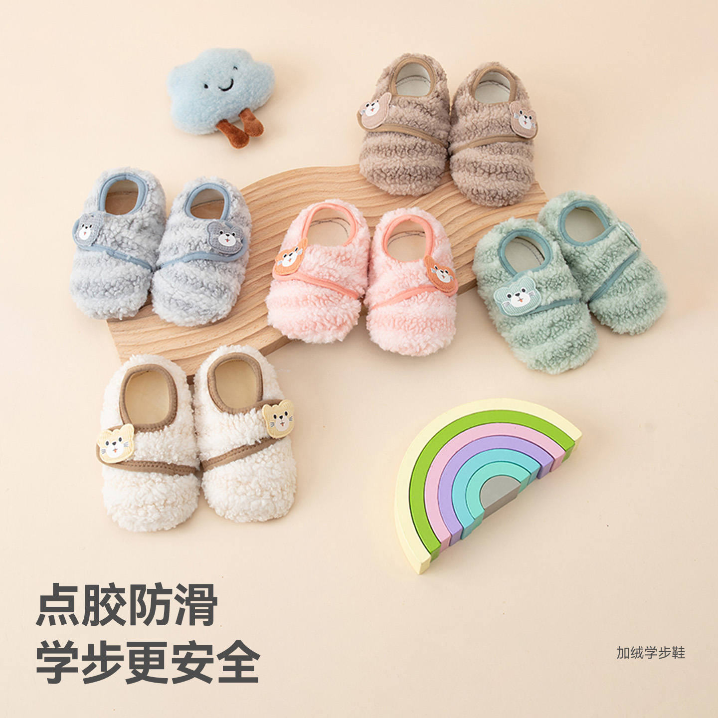 1周岁新生儿男女宝宝防掉步前鞋 加绒保暖棉鞋 秋冬季 婧麒婴儿袜鞋
