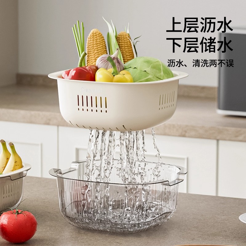2025新款 洗菜盆沥水篮厨房水盆沥水篮盆中盆家用双层洗水果滤水篮