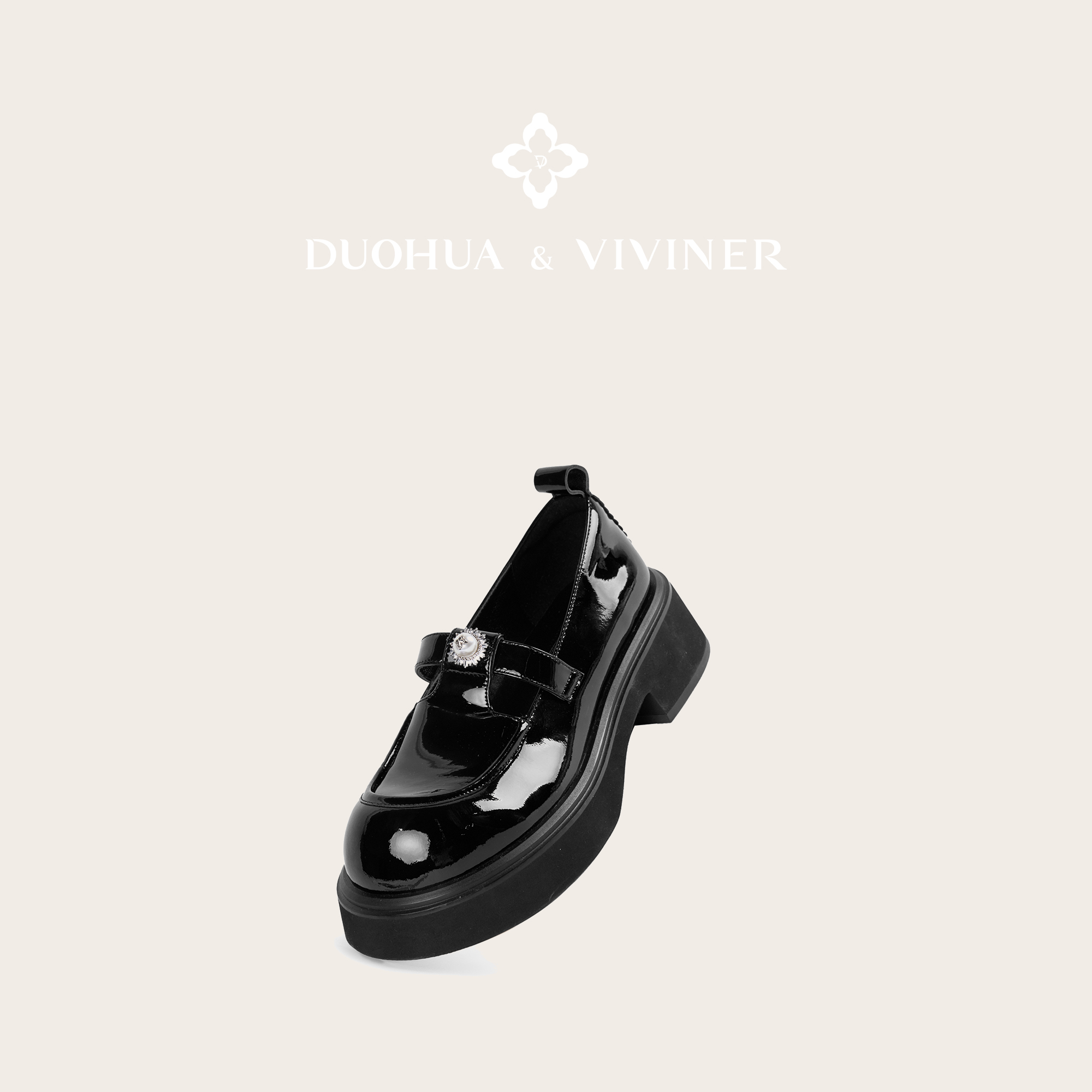 单鞋 黑色牛皮厚底增高女鞋 DUOHUA&VIVINER 复古乐福鞋 DV早秋新款