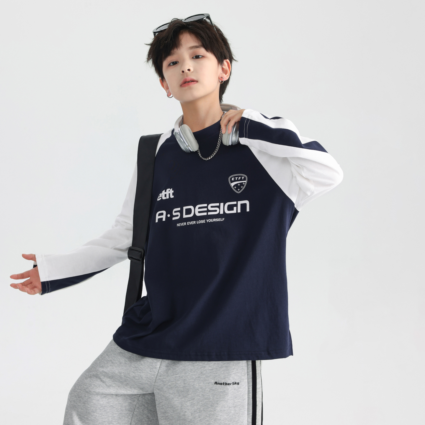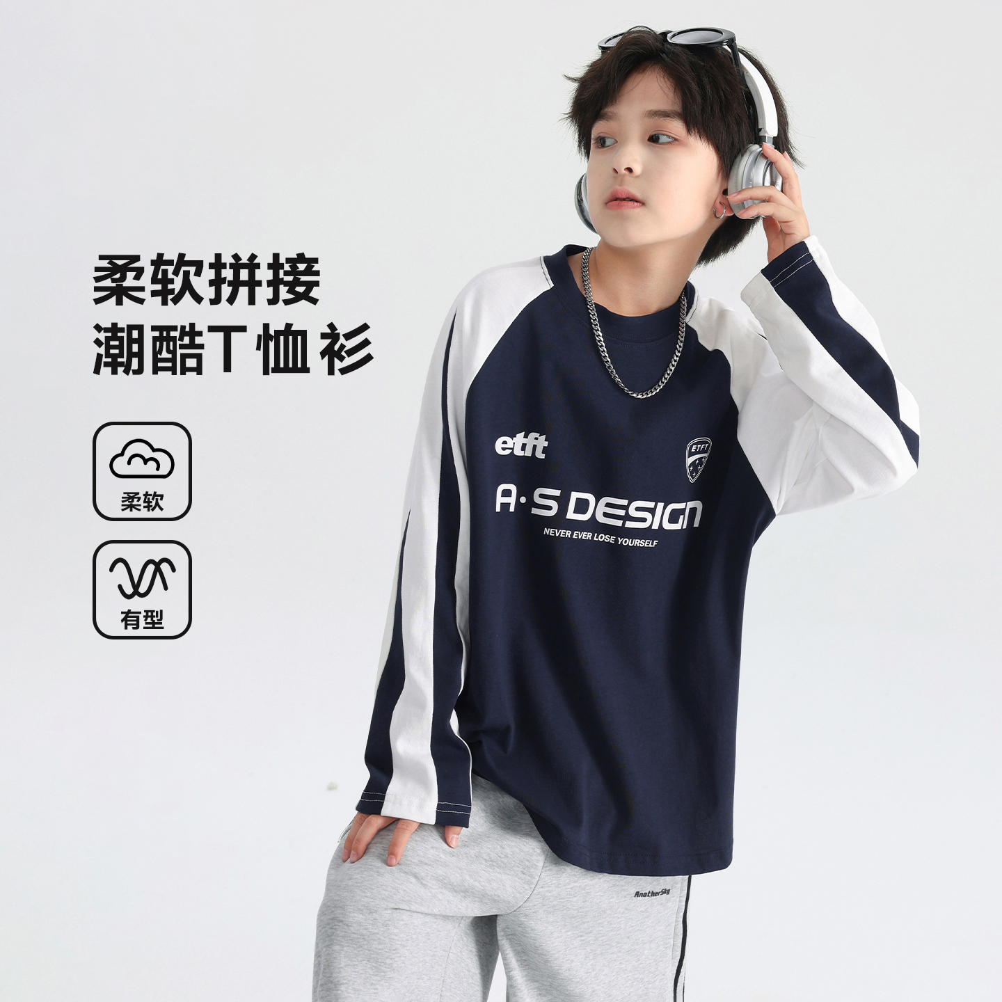男童女童吸湿透气撞色百搭休闲上衣 新款 EBAER儿童长袖 t恤2025秋季