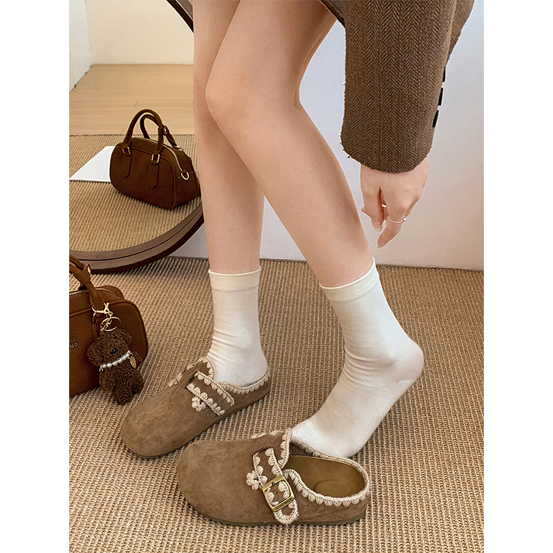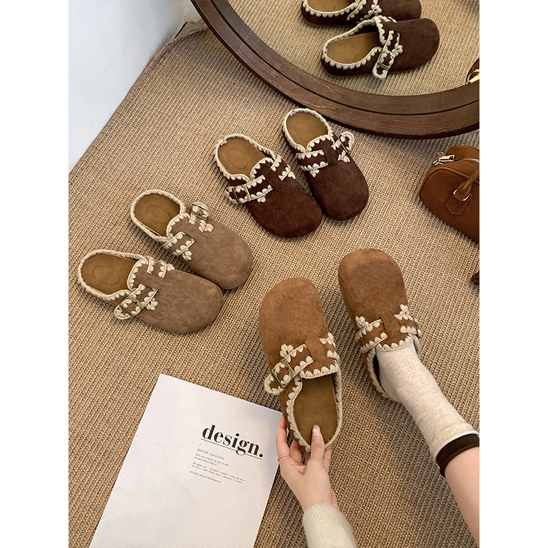 真皮 一脚蹬懒人博肯鞋 春秋勃肯鞋 女包头孕妇半拖外穿2025复古新款