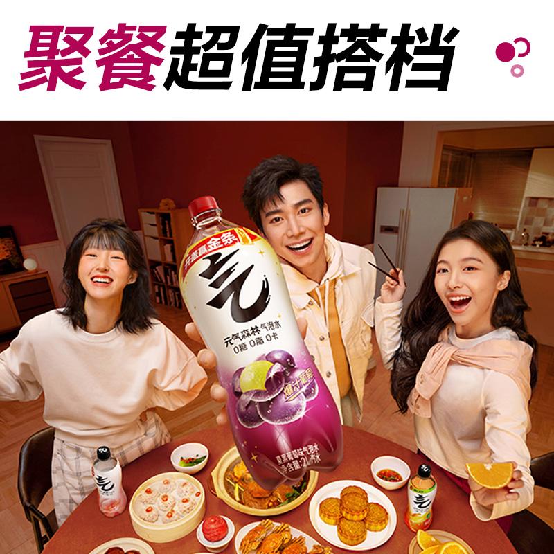 元 6瓶 气森林夏黑葡萄味气泡水2L