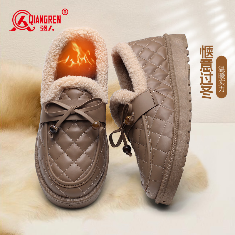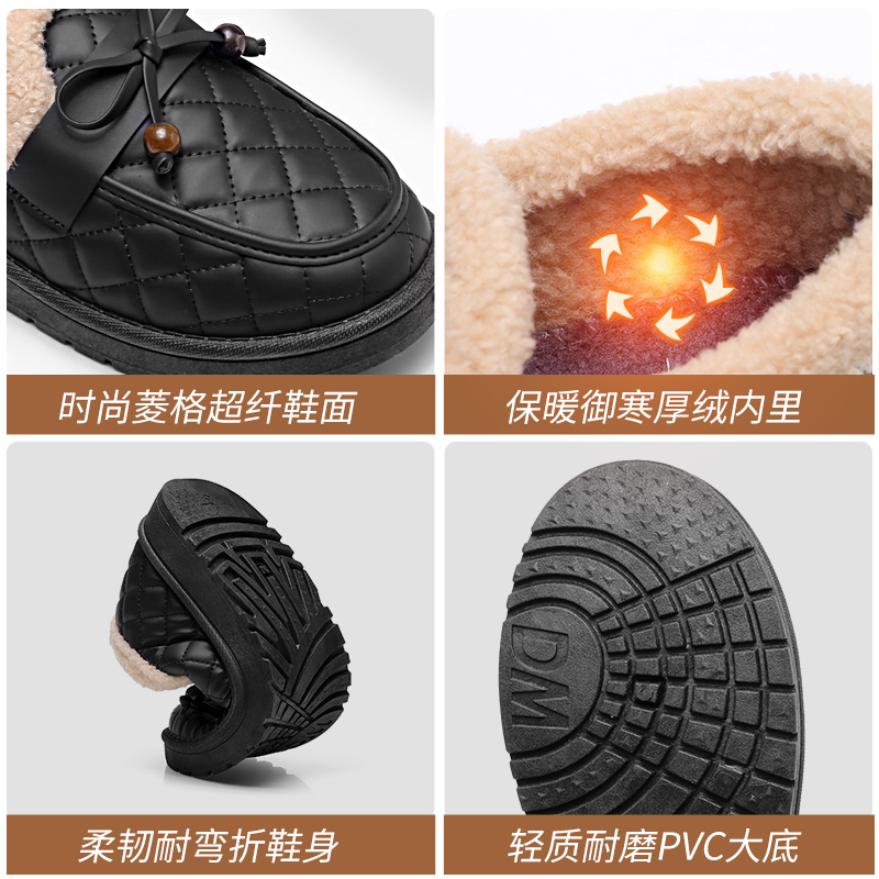 加绒加厚保暖一脚蹬软底防滑妈妈鞋 新款 雪地靴 女2024冬季 棉鞋