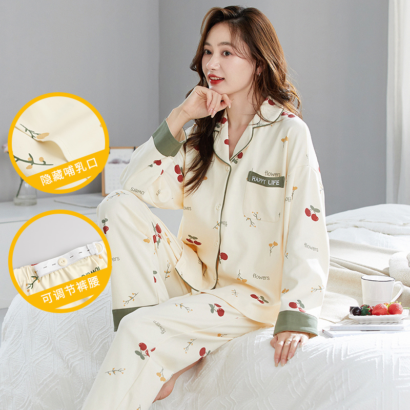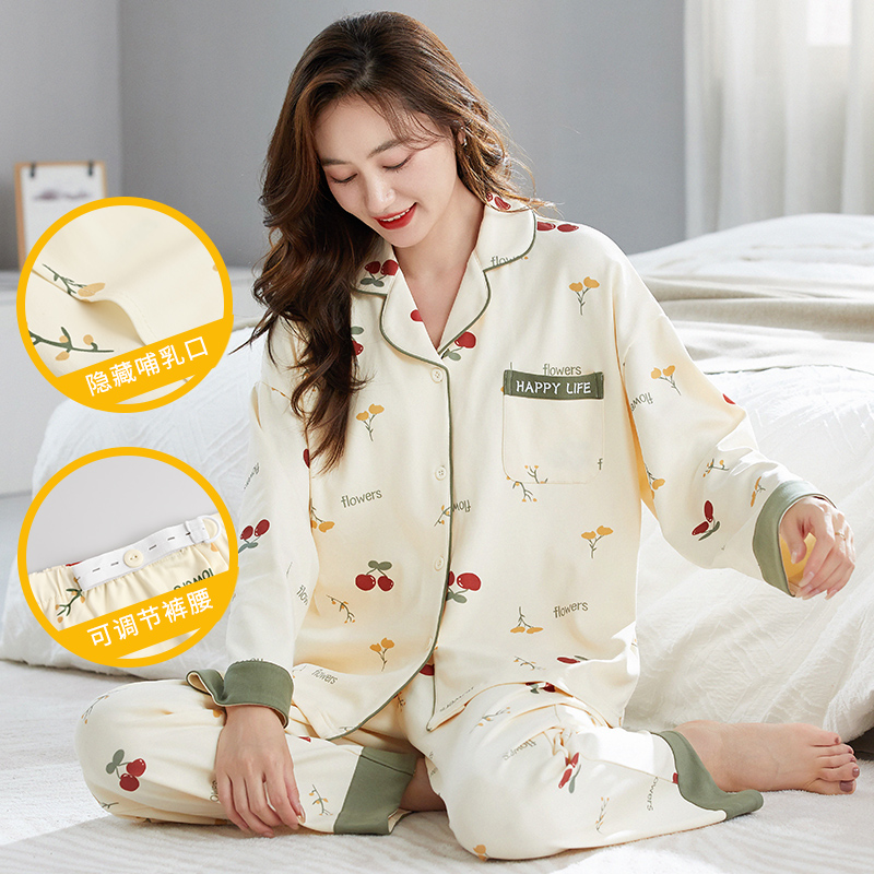 都市丽人纯棉月子服睡衣女春秋季 孕妇待产前产后哺乳期家居服套装