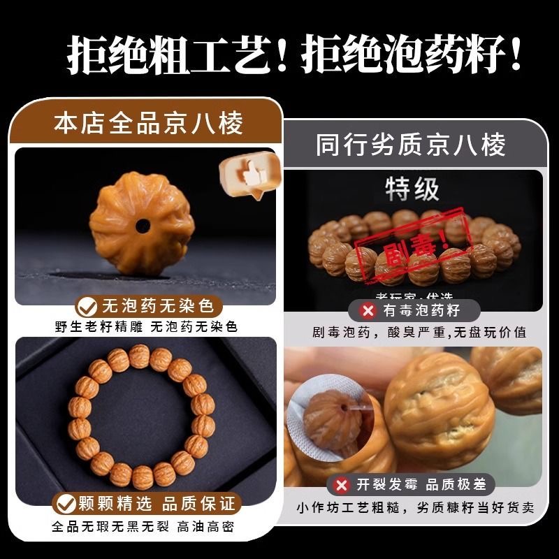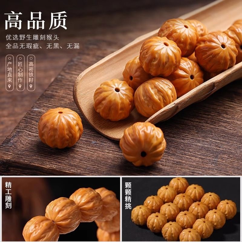 野生猴头手串男款 雕刻粗筋京八棱手串矮桩正圆核桃文玩单圈佛珠女