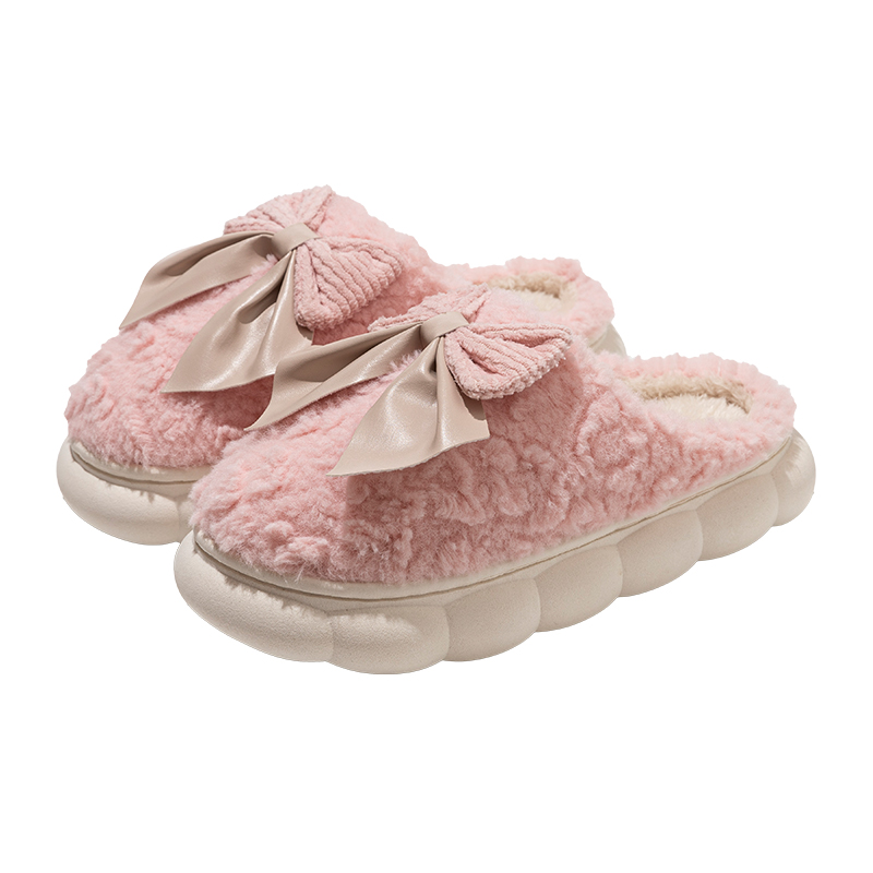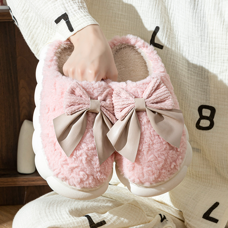 室内家居保暖防滑毛毛绒拖鞋 秋冬季 女冬天 女2025新款 蝴蝶结棉拖鞋