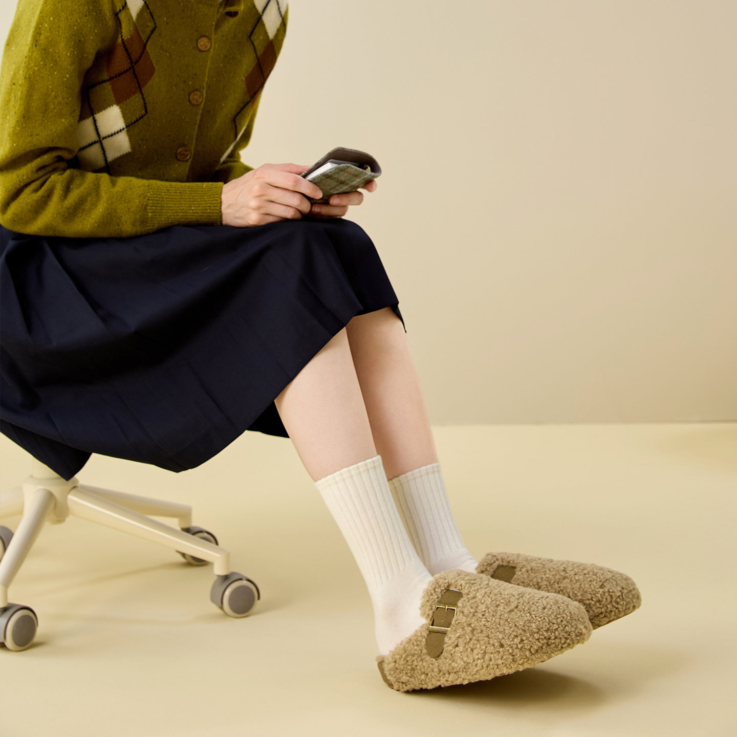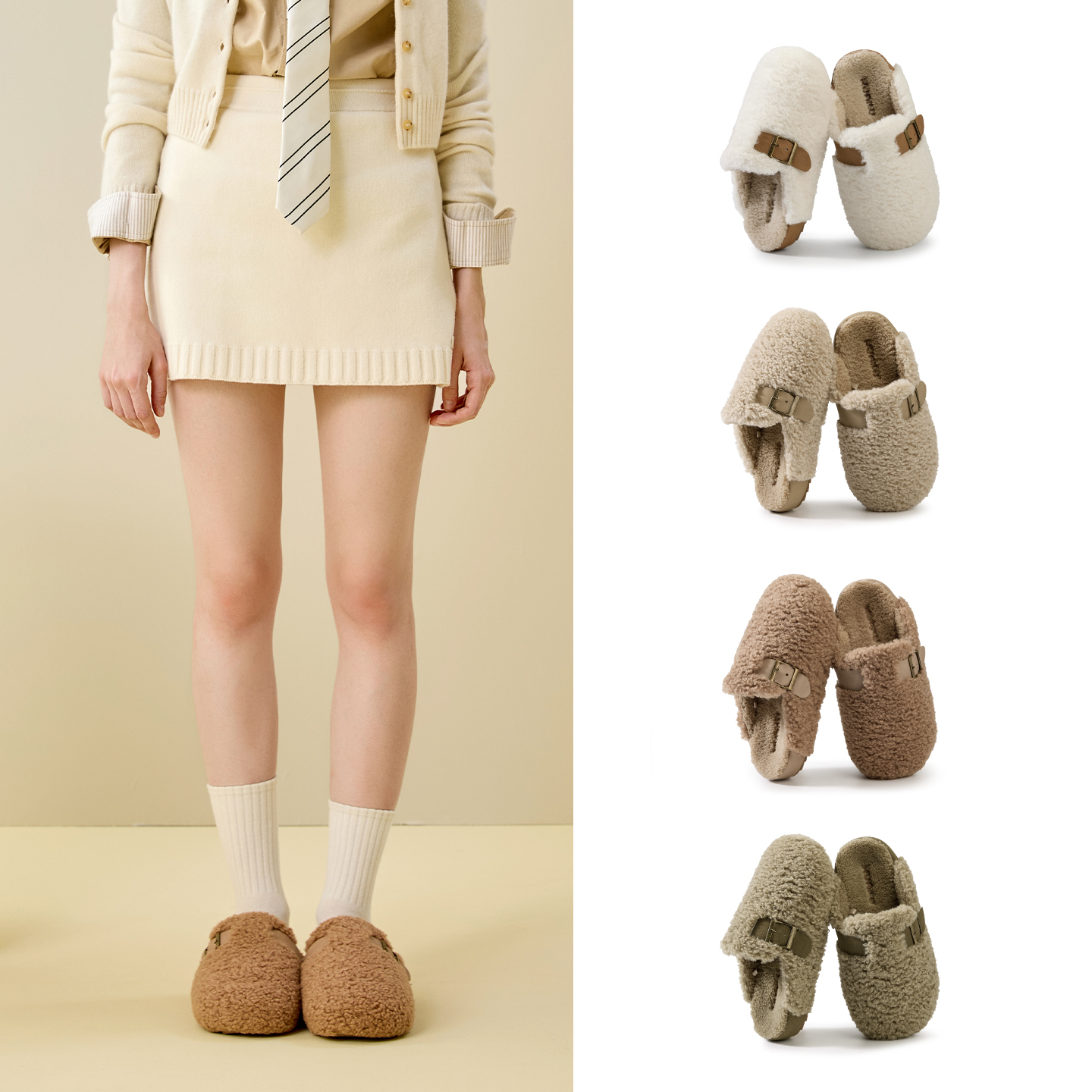 66001 秋冬加毛包头半拖鞋 DevoLife软木拖鞋 女加绒保暖休闲毛毛鞋