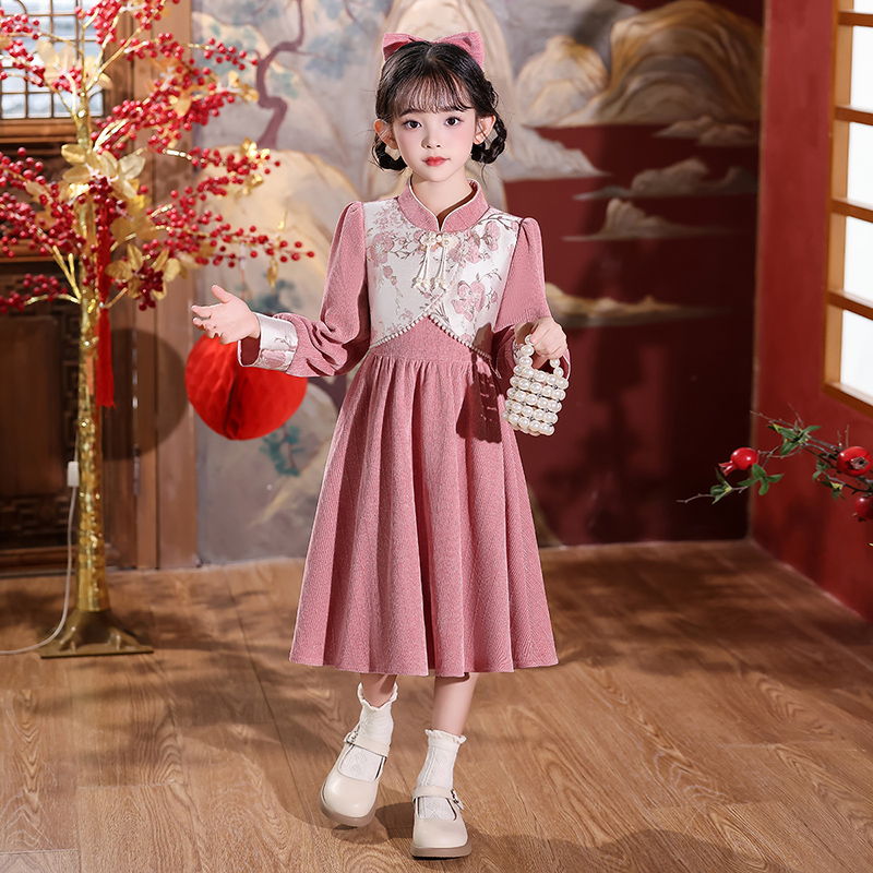 中长款 高端优雅轻熟气质修身 裙子 新款 菲梦伊钉珠红色连衣裙女秋装