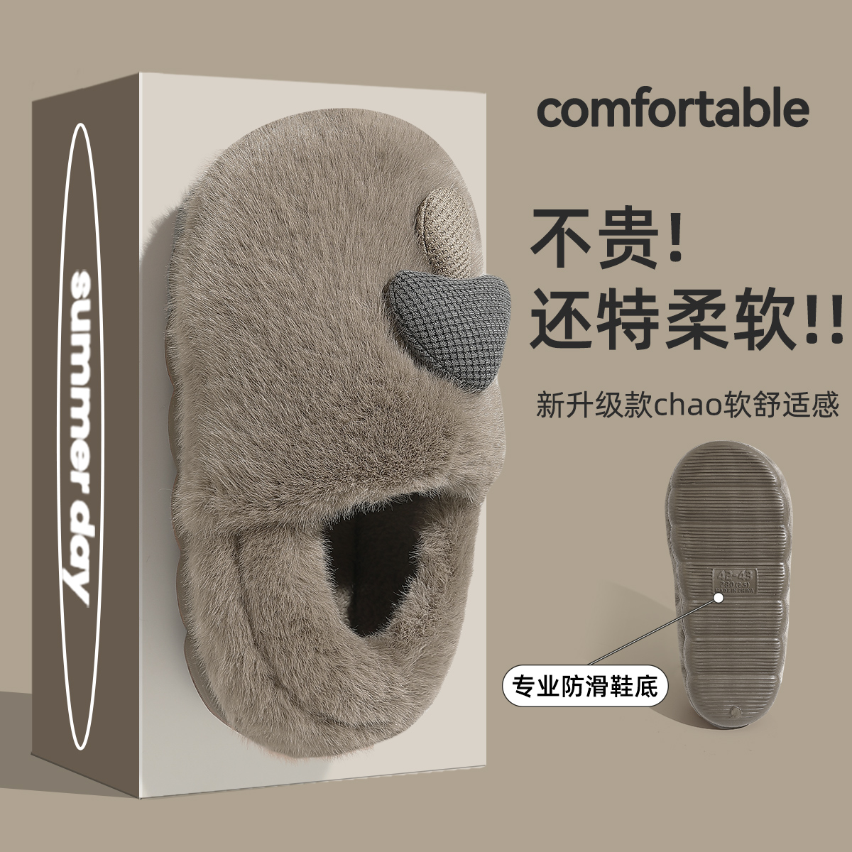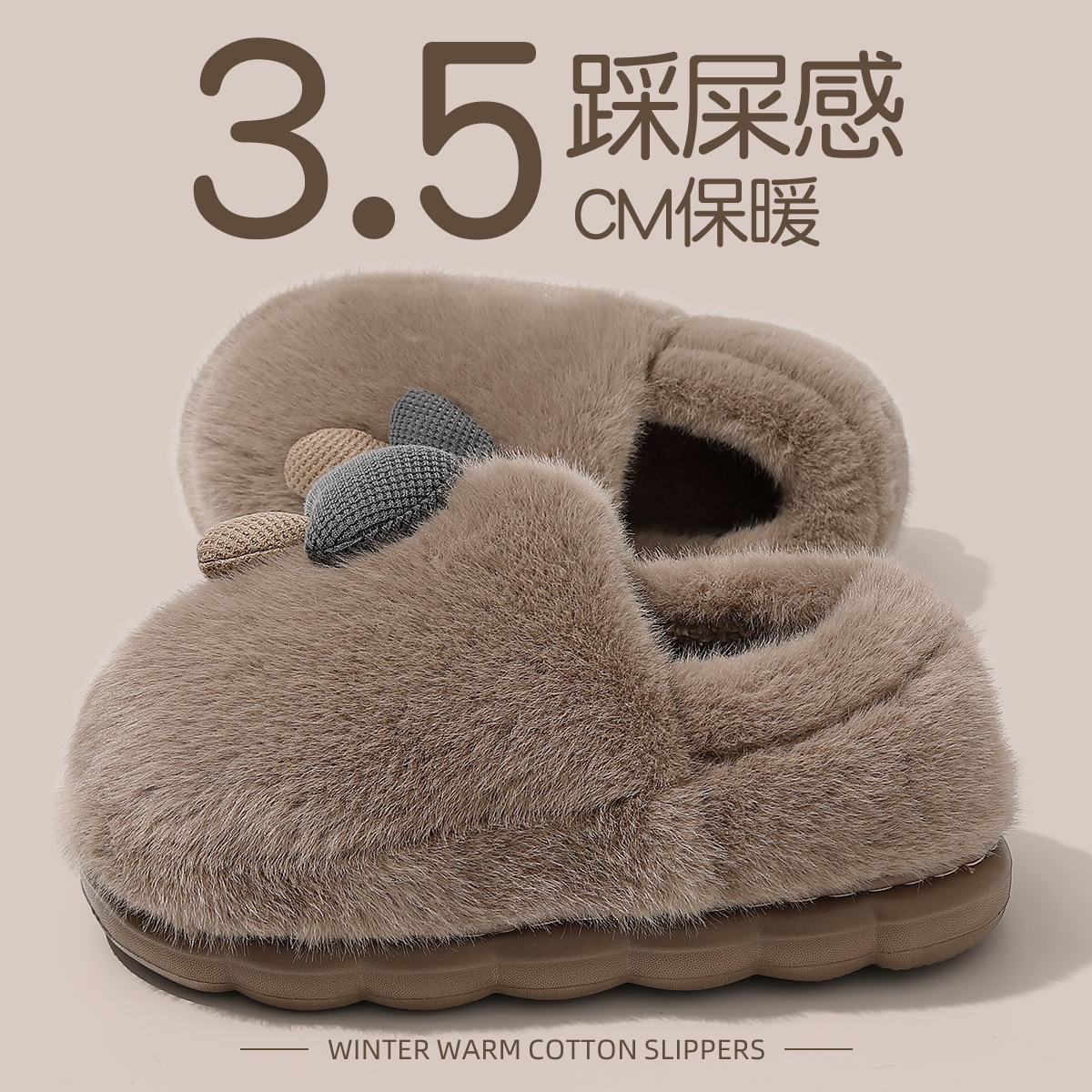 家居室内保暖毛毛绒包跟棉鞋 踩屎感棉拖鞋 2025新款 秋冬季 女 男士