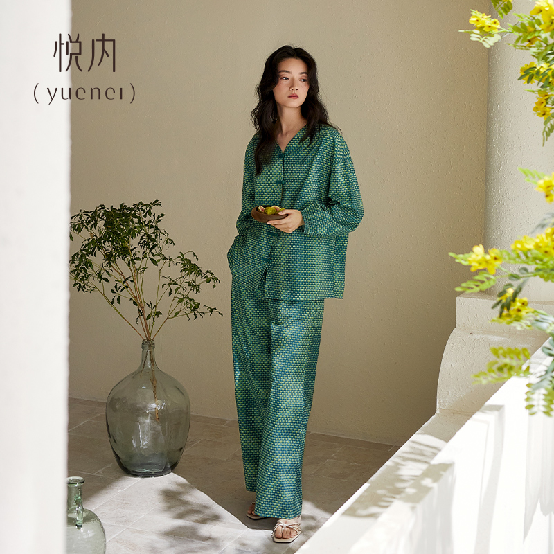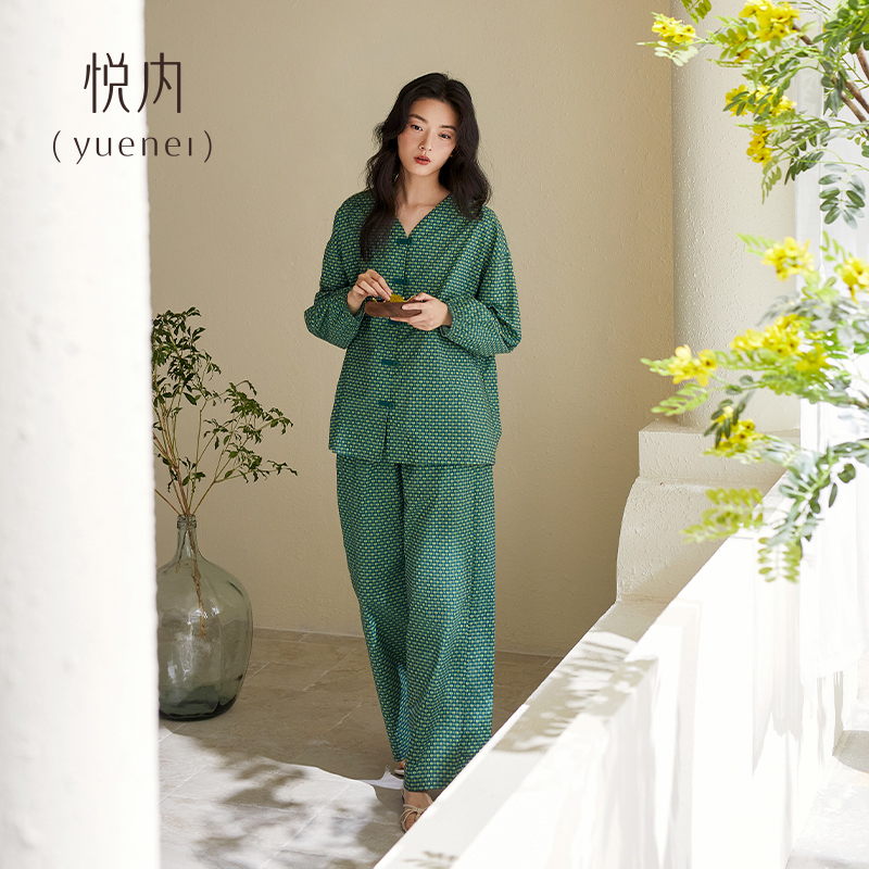翻领情侣款 法式 舒适秋冬外穿睡衣 开襟家居服套装 ubras云棉长袖
