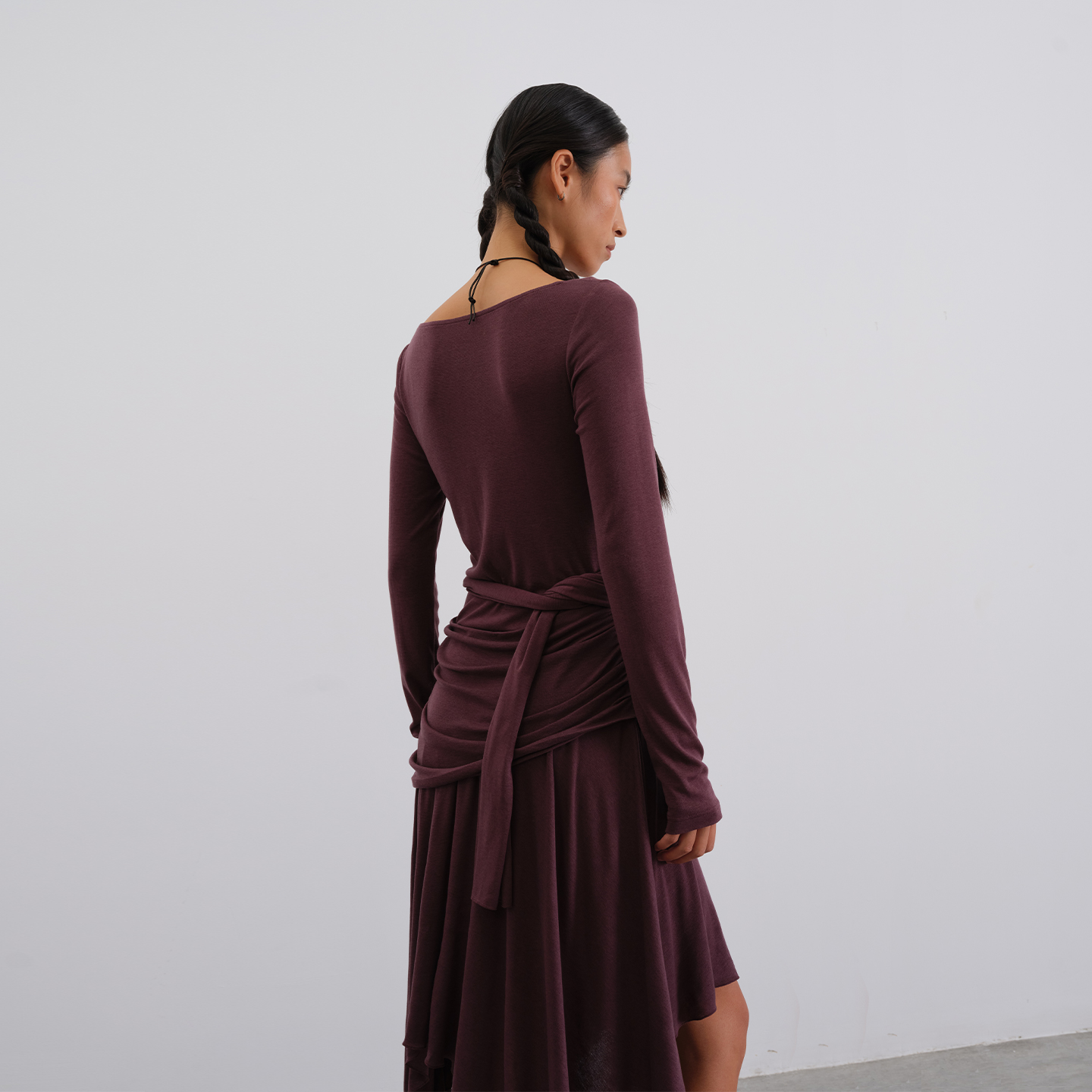 GREEN 连衣裙女不规则设计荡领长裙 BELT都市旅人25秋莱赛尔长袖