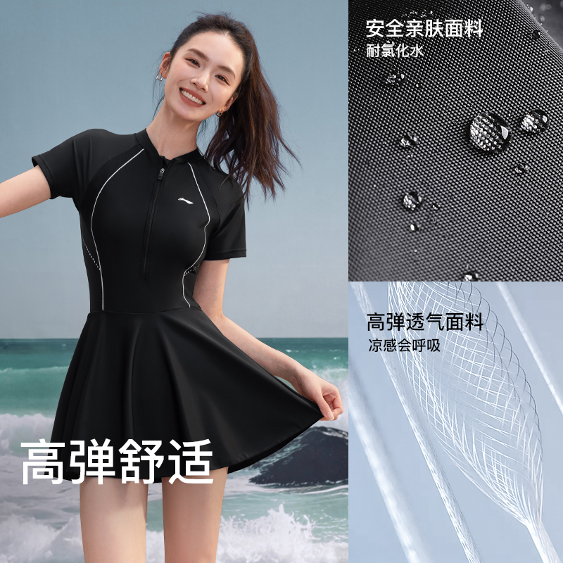 泳装 专业遮肚显瘦保守泡温泉大码 连体游泳衣2025新款 李宁泳衣女款