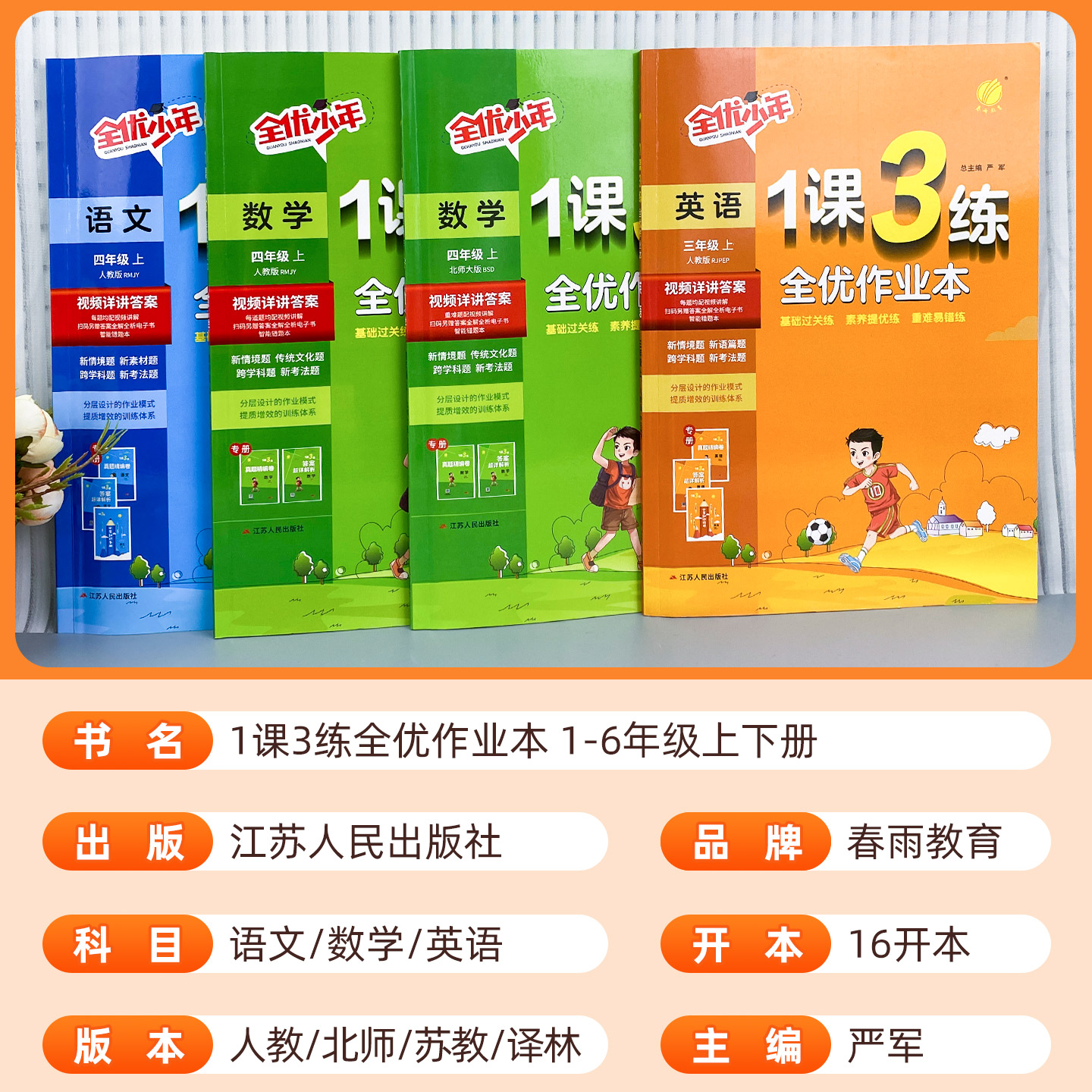 25版 小学教材同步提优训练习课时一课三练x 实验班全优少年1课3练全优作业本一二三四五六年级上下册语文数学英语人教江苏教译林版