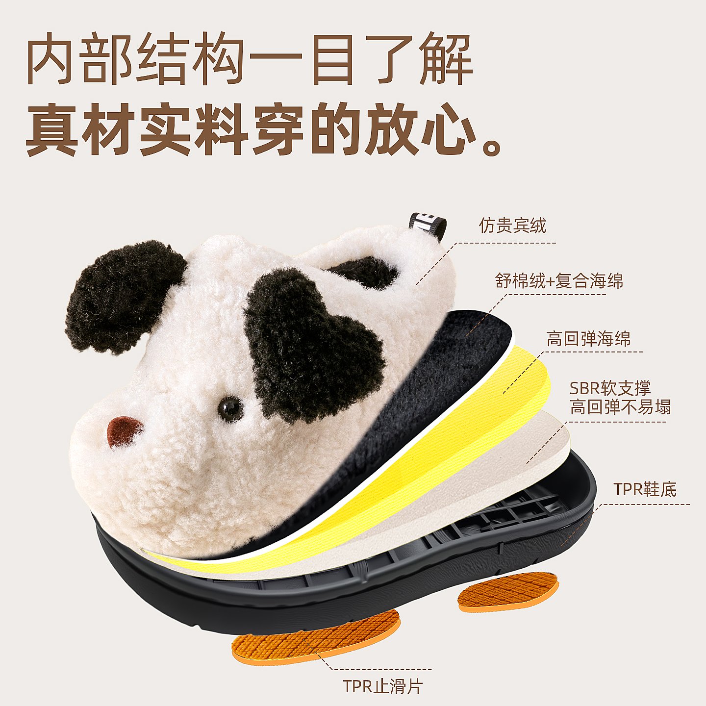 保暖宝宝棉鞋 儿童棉拖鞋 秋冬男童卡通毛毛棉拖室内家居小孩女冬季
