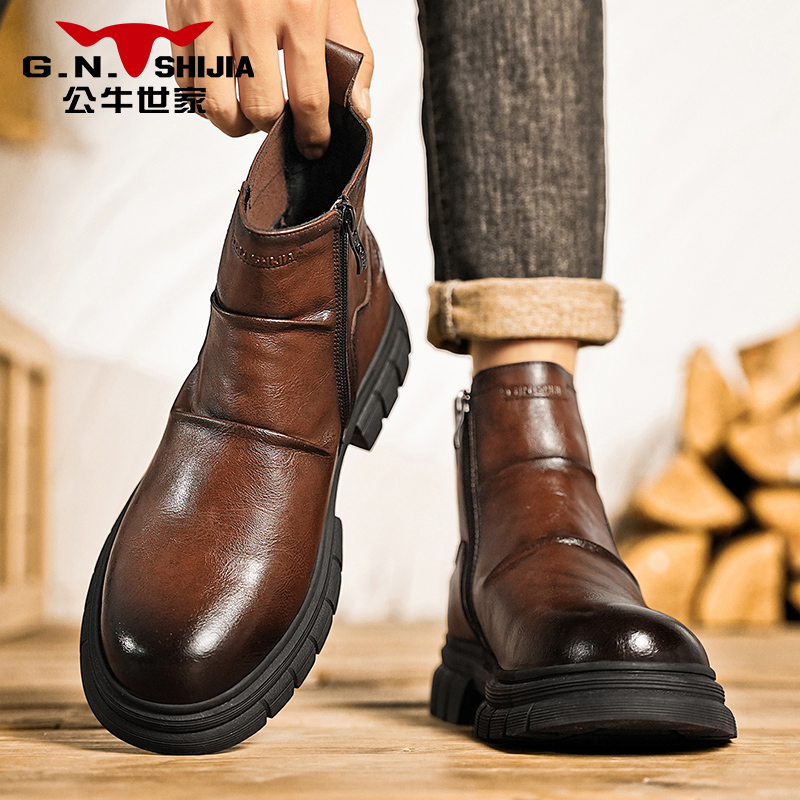 真皮厚底马丁靴女2025冬新款 棕色短靴复古户外徒步旅游登山沙漠靴