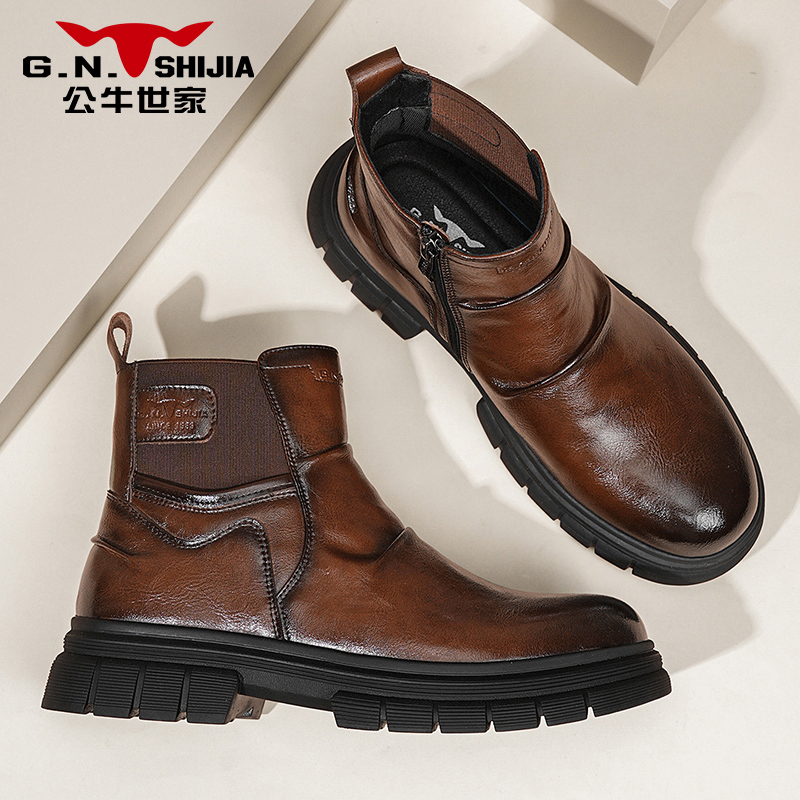 增高厚底马丁靴女2025秋冬新款 小个子英伦风烟筒靴加绒切尔西短靴