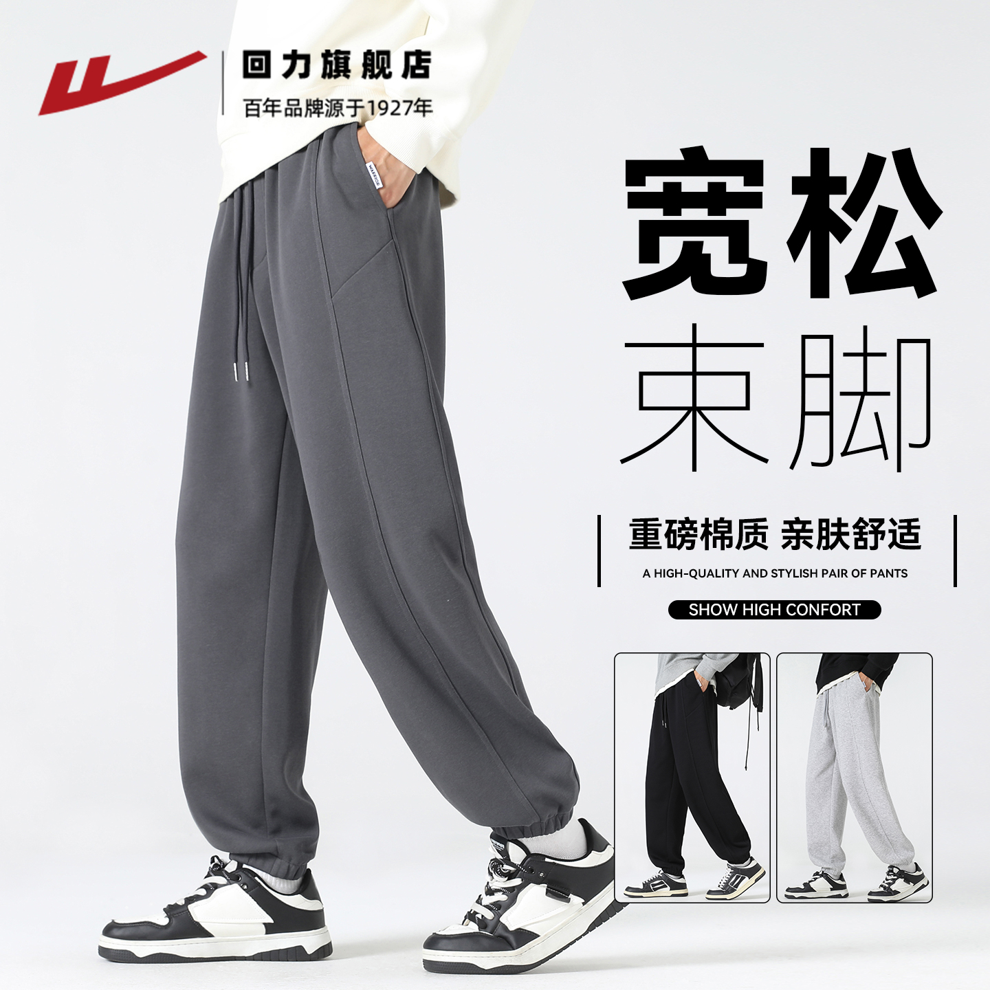 宽松棉质休闲长裤 回力裤 运动重磅束脚卫裤 秋冬加绒2025新款 子男款