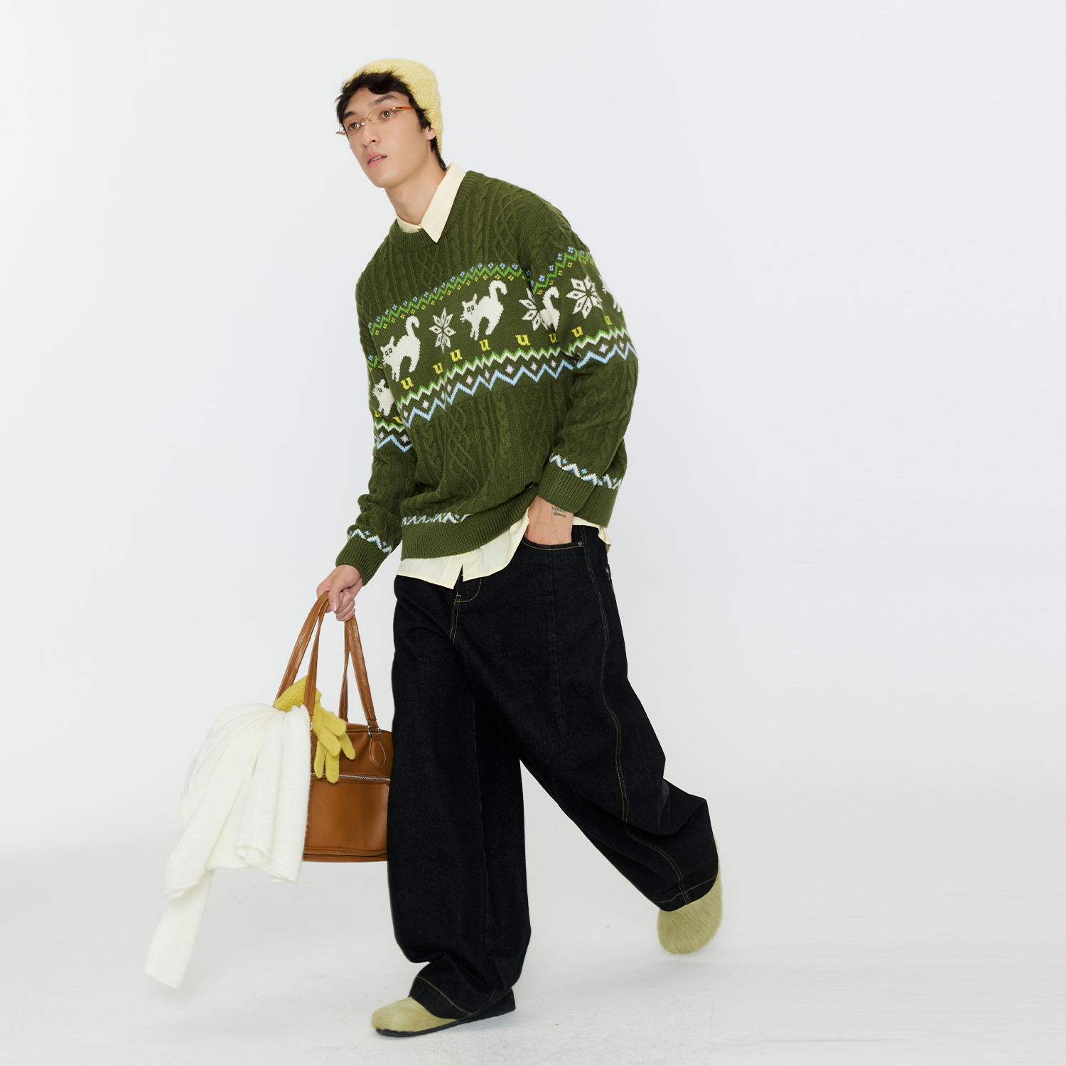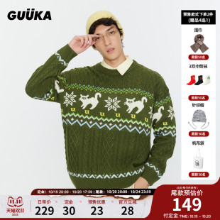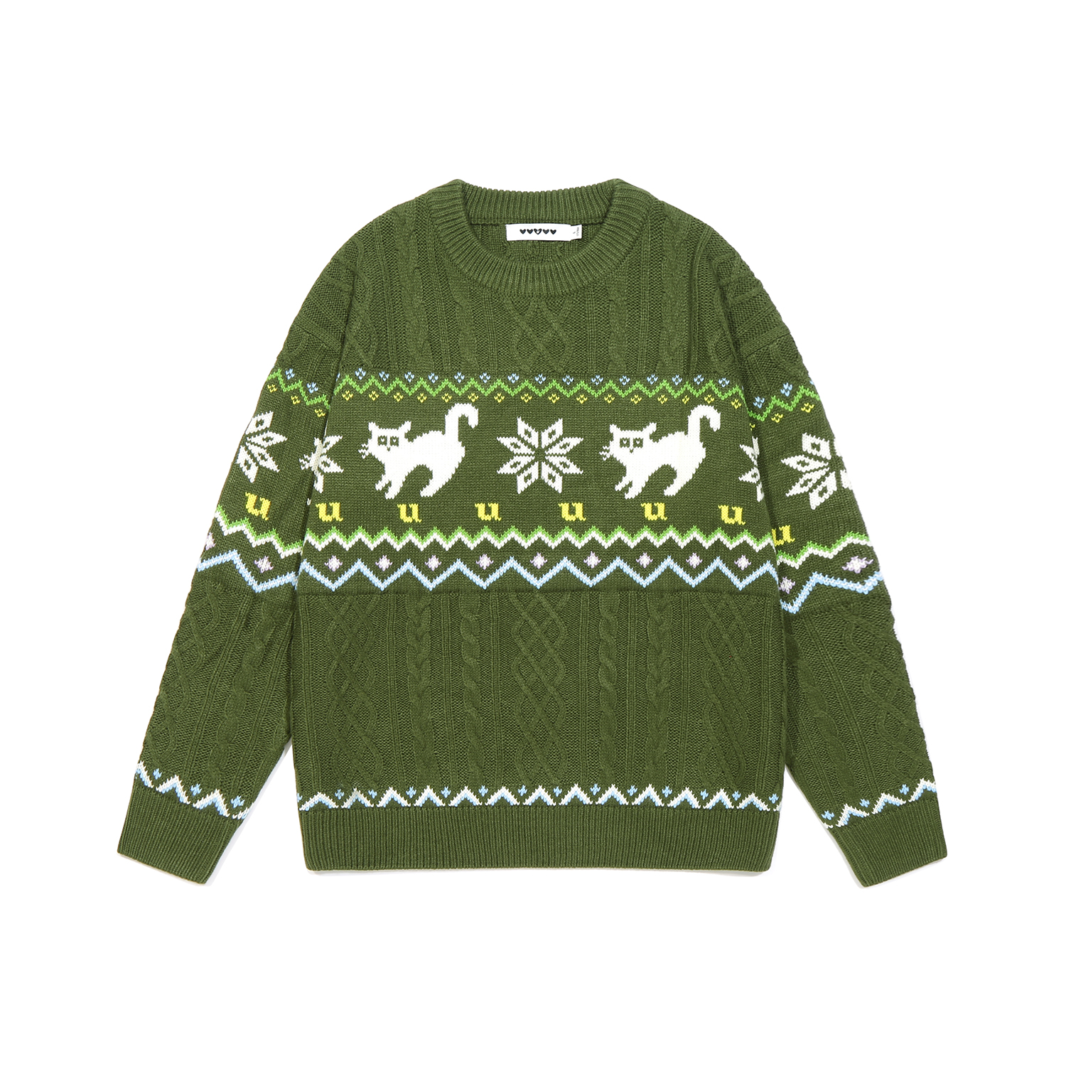 费尔岛复古色提花圆领针织衫 易烊千玺魏哲鸣同款 毛衣 Unvesno
