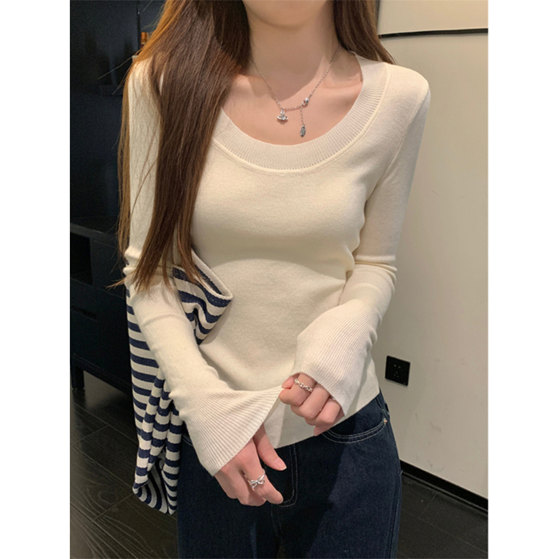 早秋修身 法式 女2025新款 针织衫 内搭软糯毛衣打底上衣 气质U领长袖