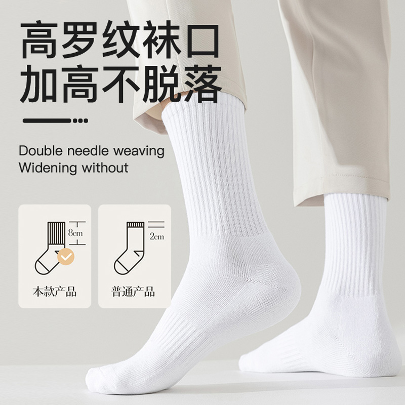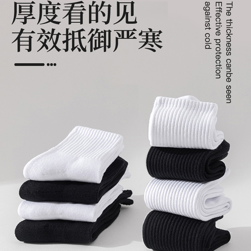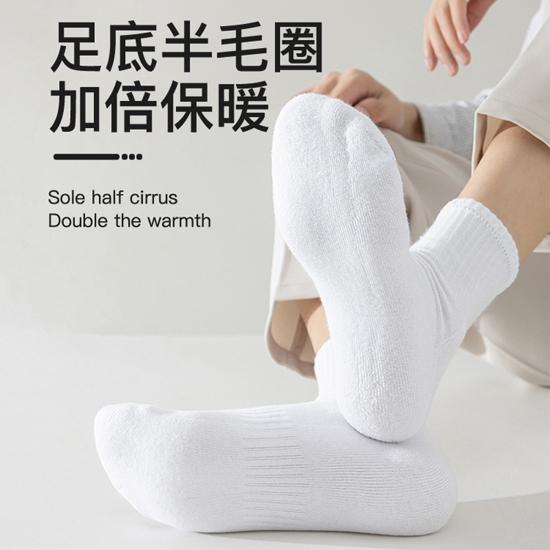 浪莎男士 袜子秋冬加厚毛巾底中筒袜毛圈袜防臭棉袜长筒袜运动长袜