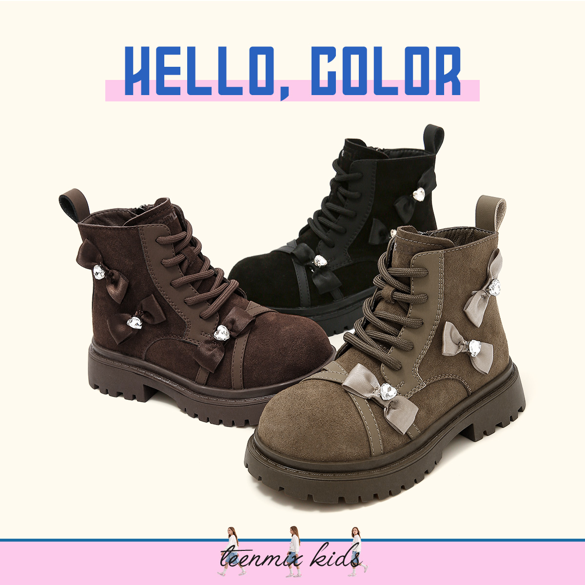 天美意童鞋 儿童大黄靴女童百搭蝴蝶结短靴复古马丁靴 2025秋冬新款