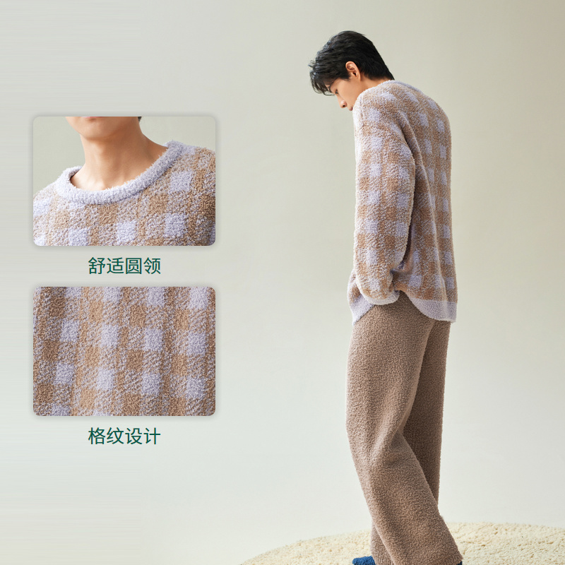 2025新款 安之伴 睡衣秋冬季 男士 半边绒加厚珊瑚绒家居服 巨保暖