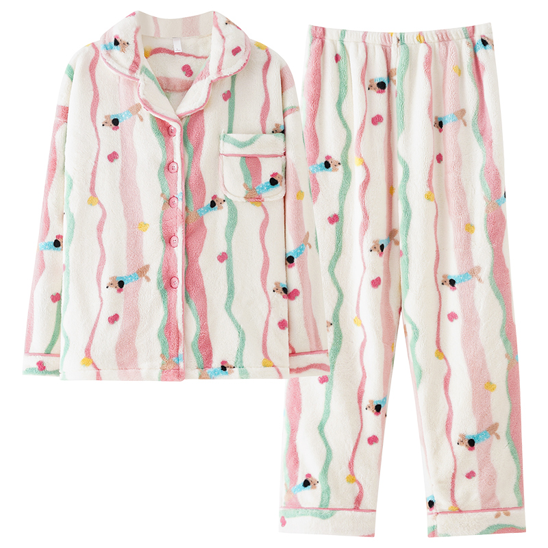 海岛绒可外穿家居服 简约薄款 睡衣女秋冬季 保暖珊瑚绒女士睡衣套装