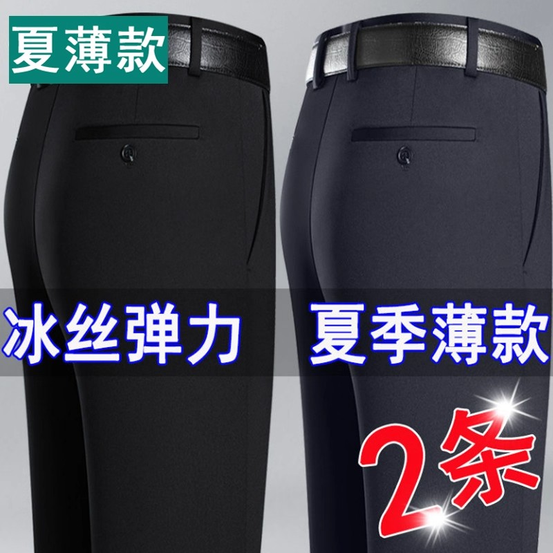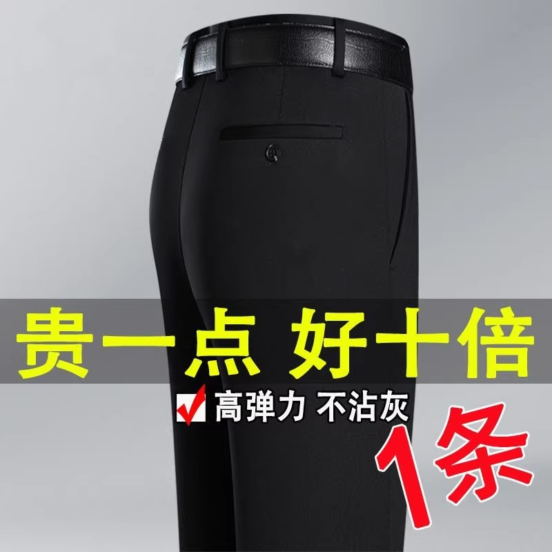 厚款 冰丝高腰长裤 高弹力男士 直筒宽松免烫商务西裤 子男 休闲裤 秋季