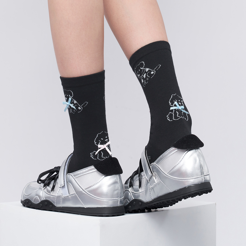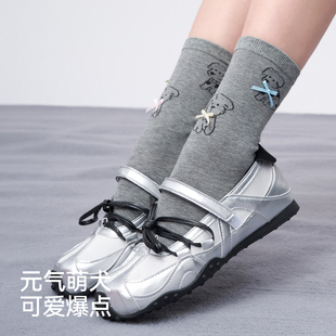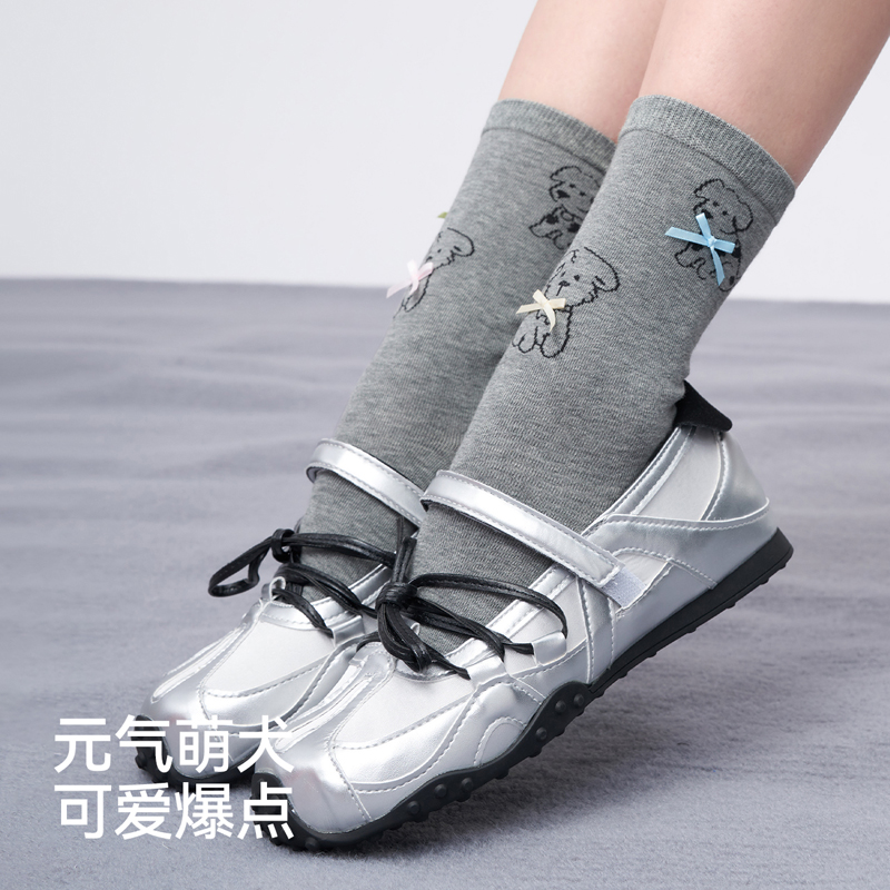 森马袜子女中筒可爱卡通蝴蝶结棉袜甜美2025新款 长袜 秋冬女生个性