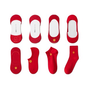 红色袜子结婚新娘新郎情侣一对男女士薄款 细带 隐形长筒船袜高跟鞋