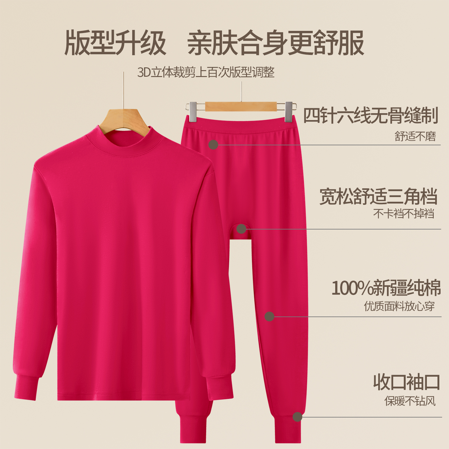宽松妈妈线衣裤 奶奶秋衣秋裤 大码 高领女保暖内衣套装 老人纯棉毛衫