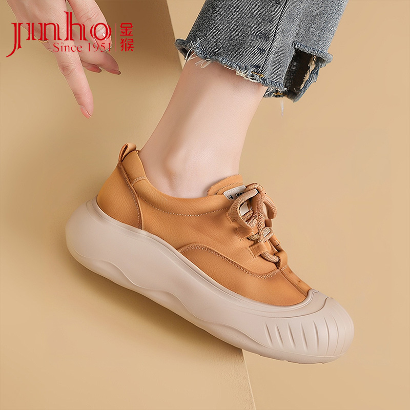 厚底松糕系带增高1008 真皮休闲百搭摇摇鞋 吉祥鸟超轻女鞋 2025新款