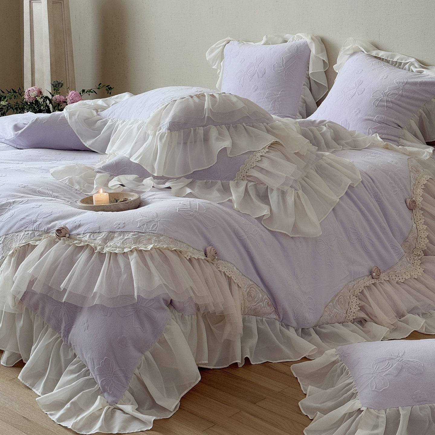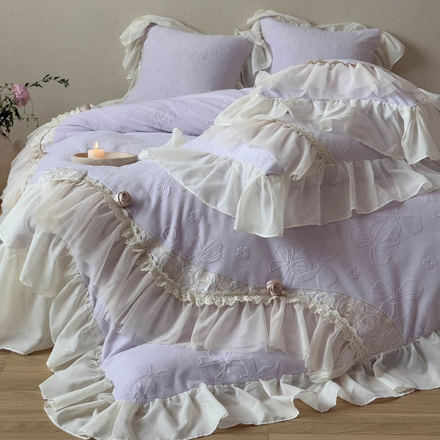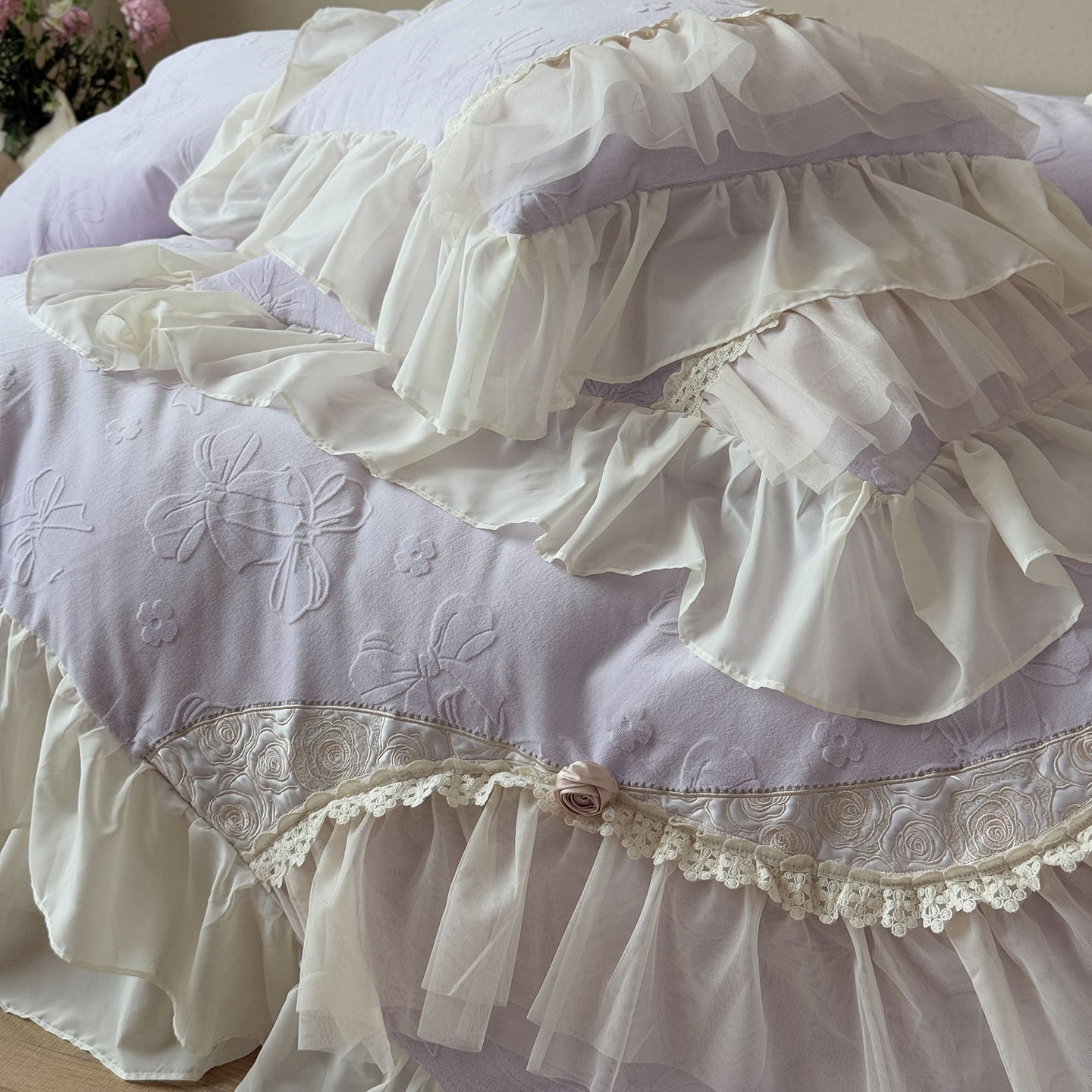 双面加厚珊瑚绒荷叶边被套床盖款 法式 公主风保暖牛奶绒四件套冬季