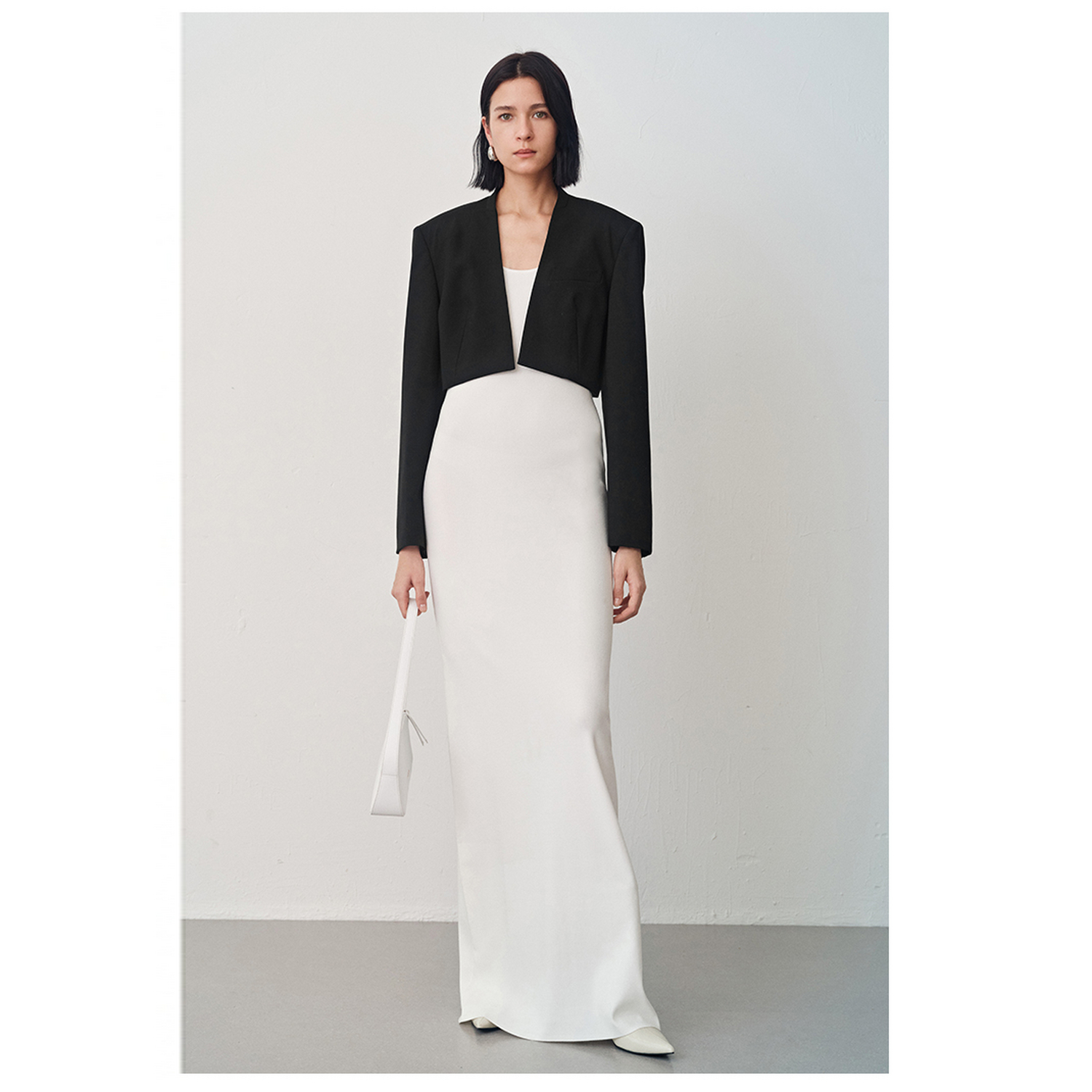两件套长裙 百褶半身裙显瘦高级感大码 秋冬简约百搭白色衬衫 女西装