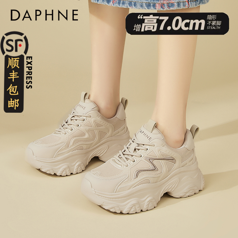 小个子复古增高轻便运动鞋 新款 女2025秋季 达芙妮小香风厚底老爹鞋
