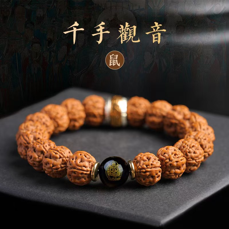 梅花桩小金刚菩提手串男士 精品文玩原籽核桃本命佛珠八大守护神