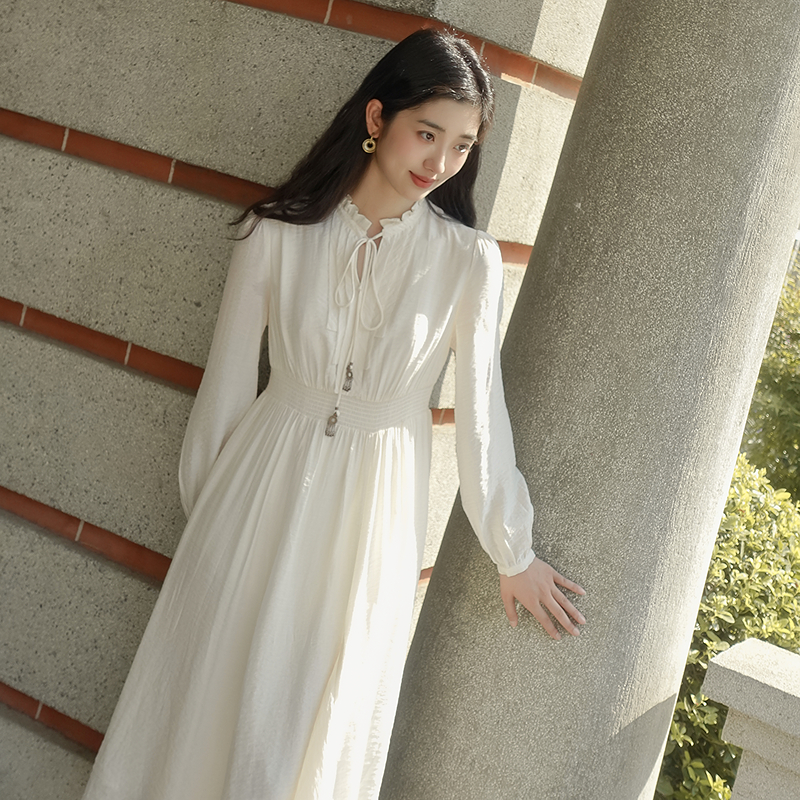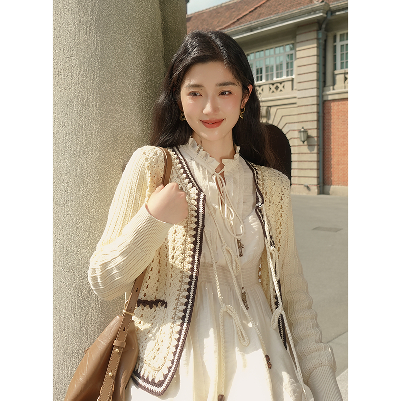 LILY2025秋冬新款 连衣裙女 含羊毛小香风针织镂空收腰气质白色长袖