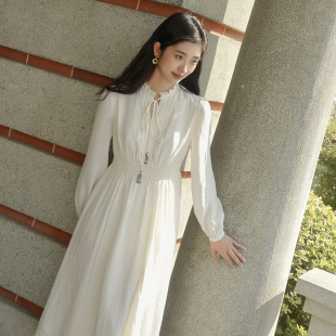 穿搭新款 连衣裙25秋冬季 女短裙子内搭裙 裙长袖 阔色蝴蝶结条纹衬衫