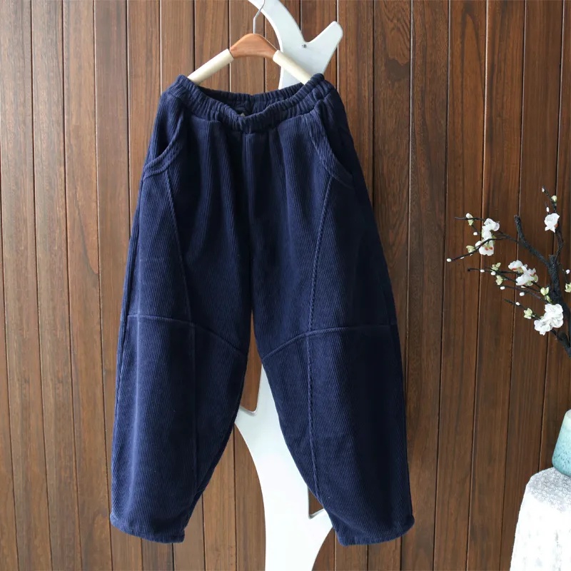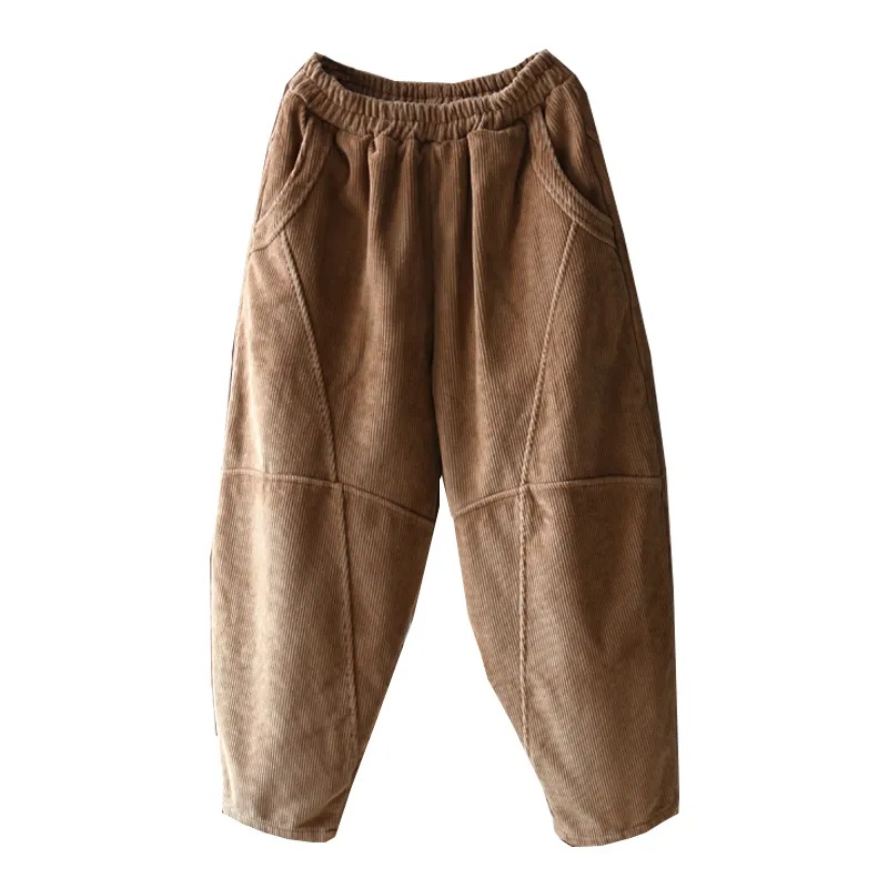 加绒加厚宽松显瘦休闲萝卜裤 2025新款 女秋季 文艺复古灯芯绒哈伦裤