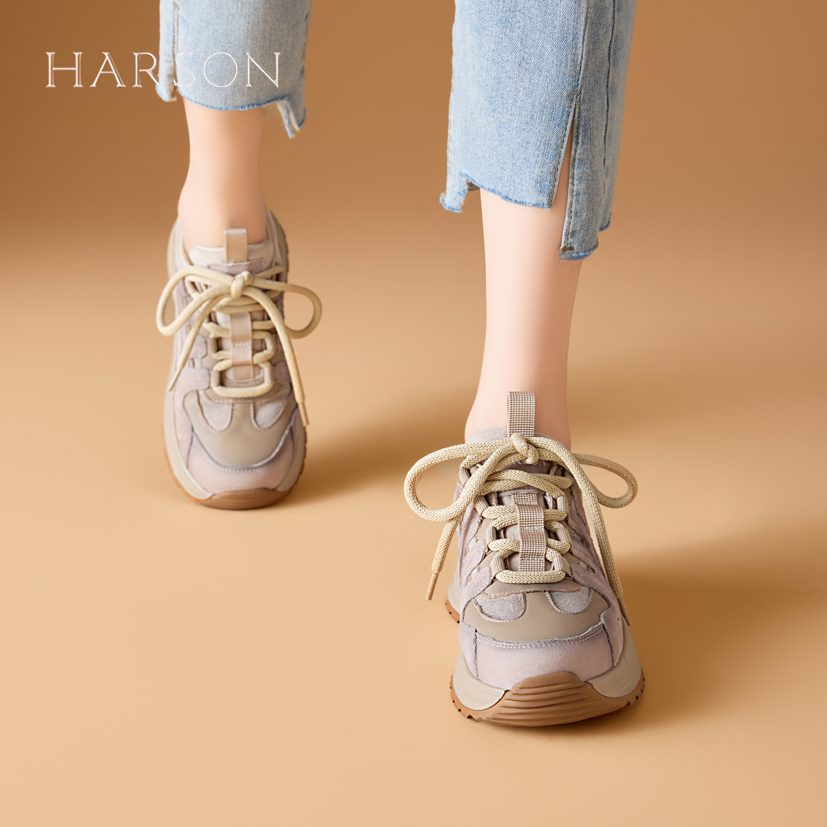 子 厚底增高休闲情侣透气运动鞋 骆驼银月户外复古老爹鞋 女2025新款