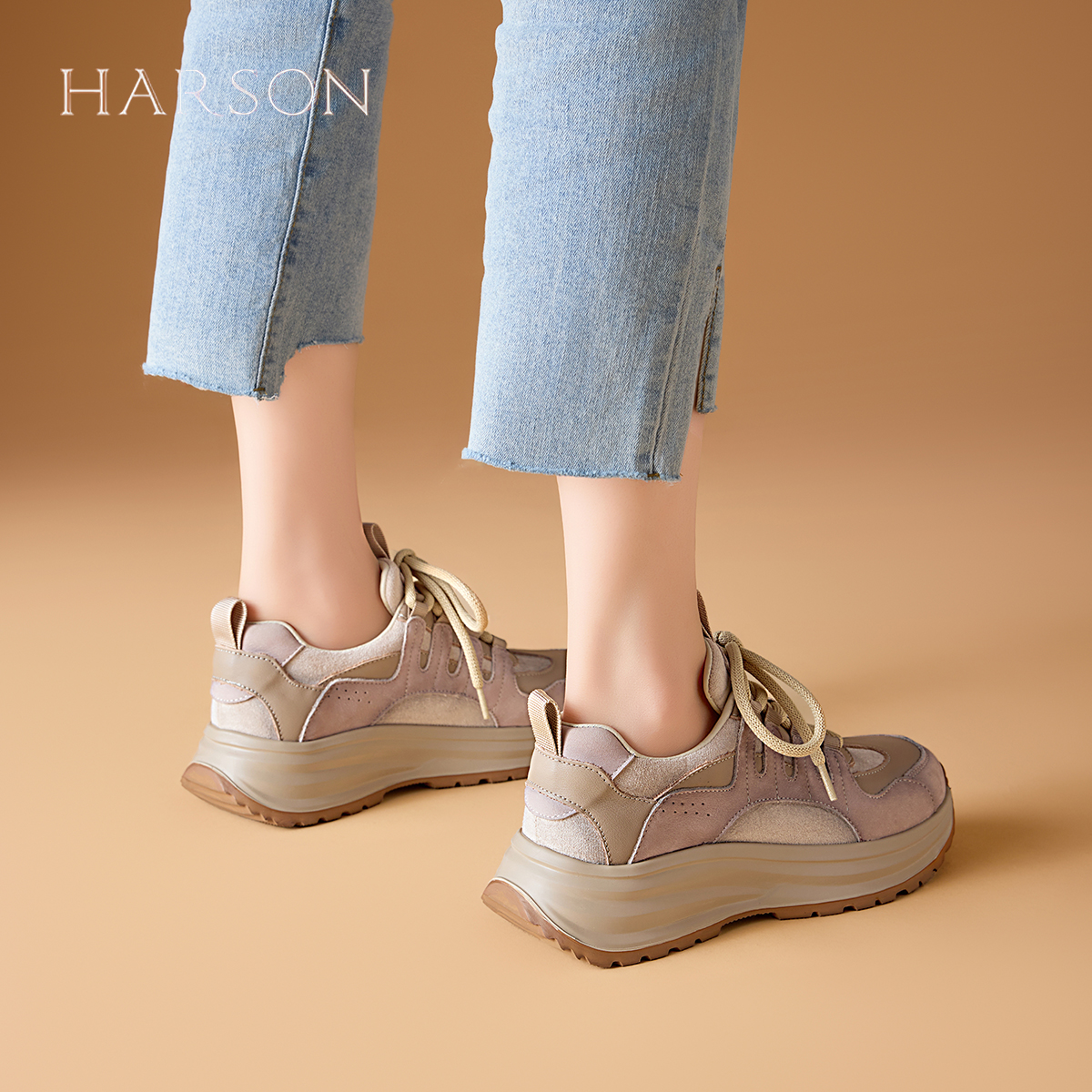 女款 休闲运动鞋 2025秋季 棕色内增高设计感小众时尚 新款 人本德训鞋