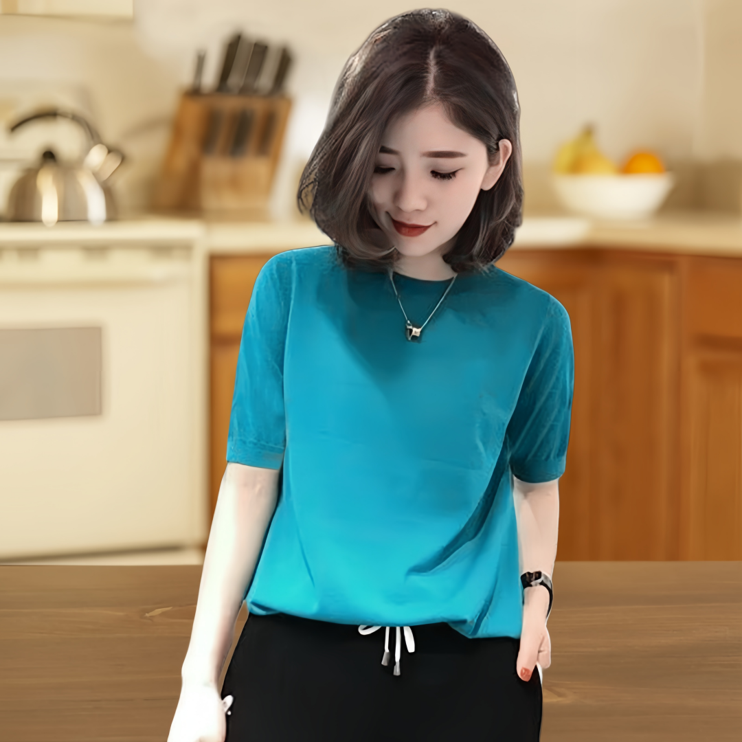 内搭上衣中袖 大码 毛衣女短袖 针织打底衫 t恤胖mm春秋 半高领五分袖