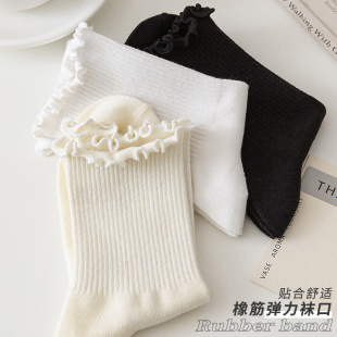 白色木耳边女中筒袜春秋款 秋冬日系花边堆堆无骨月子袜 纯棉乐福鞋