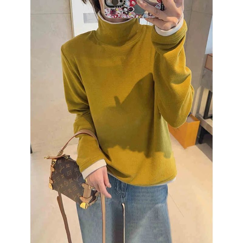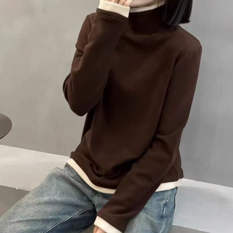 T恤女打底衫 拼接高领假两件长袖 卫衣保暖潮 德绒秋冬新款 2025爆款