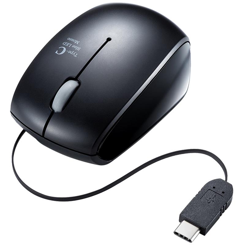 日本SANWA山业有线鼠标TYPE C插口顺滑小巧伸缩电脑手机办公便携