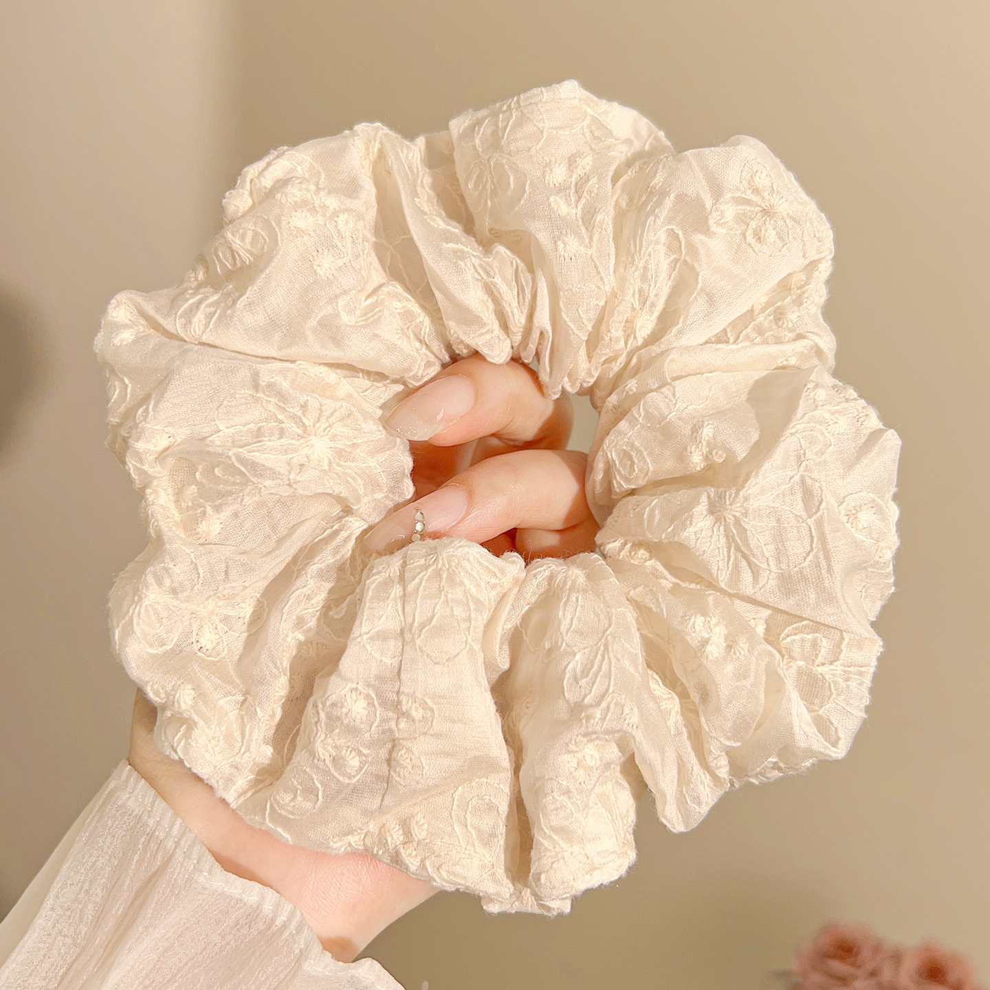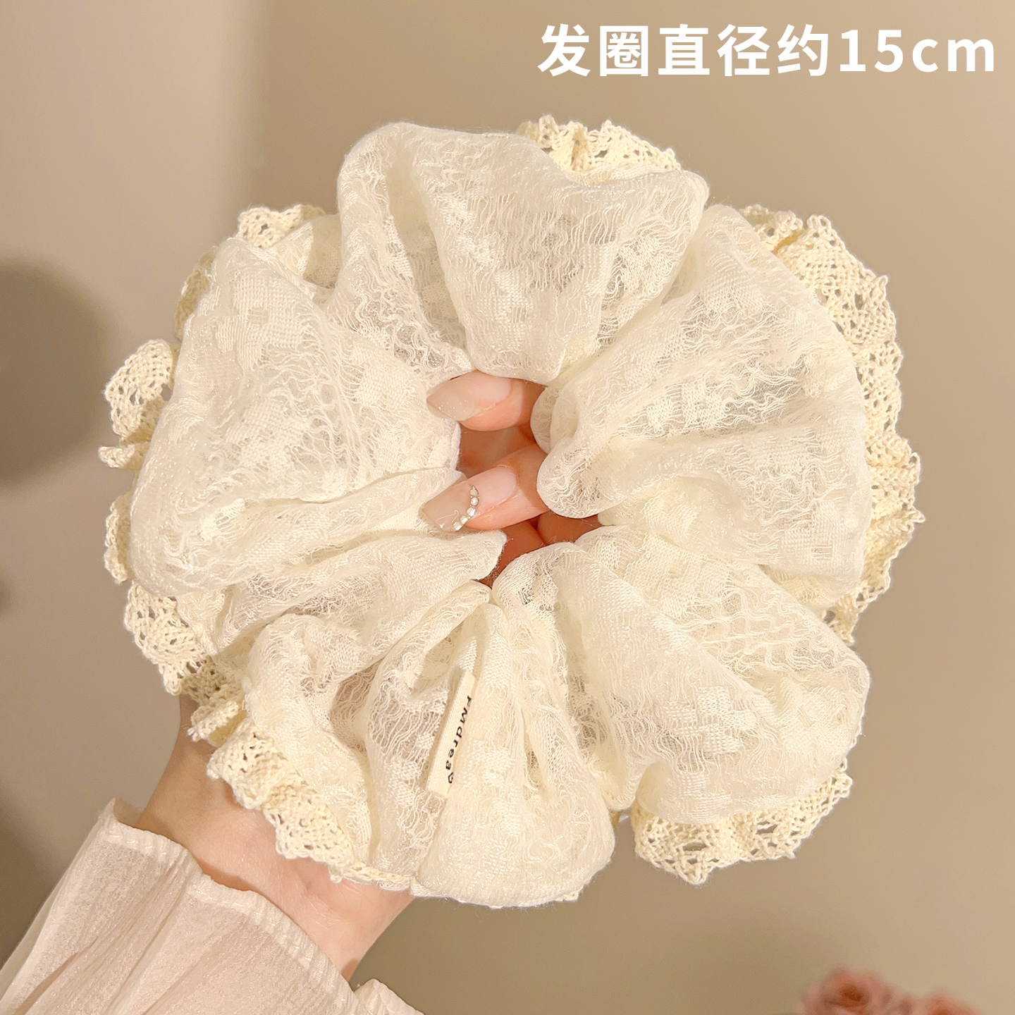 韩系纯白蕾丝花边大肠发圈女高级感百搭丸子头发绳超大号头绳发饰