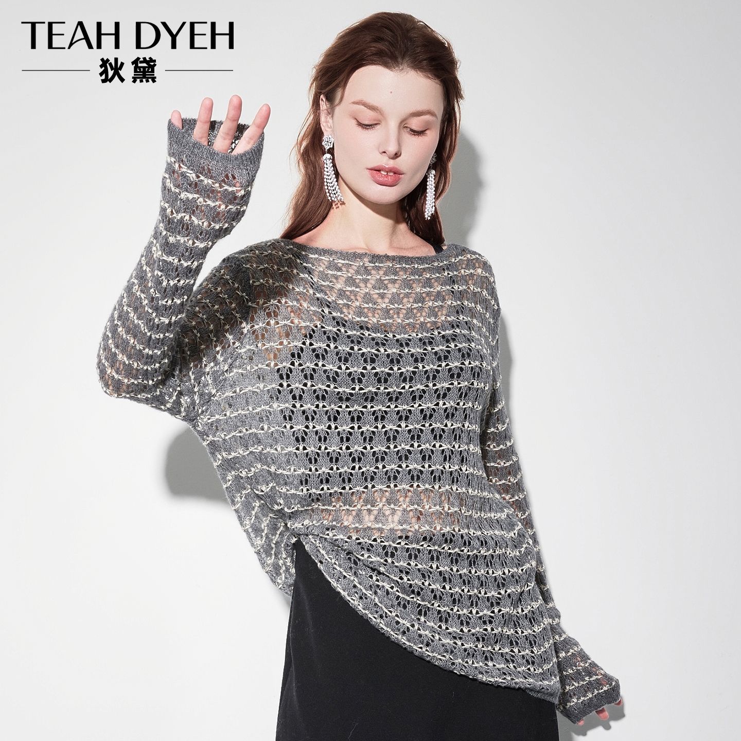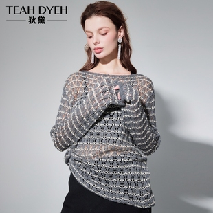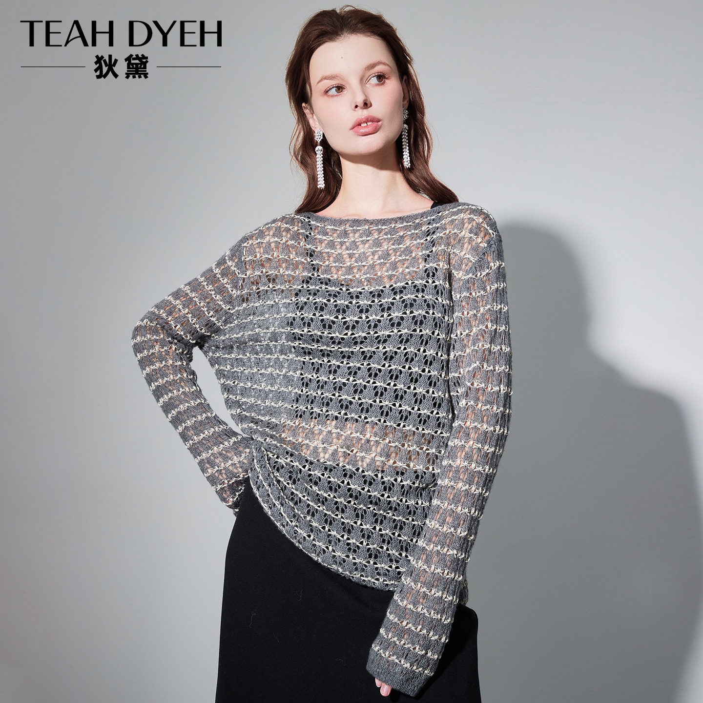 温柔高阶女人味穿搭 上衣女 羊驼毛钩花镂空一字肩毛衣针织罩衫