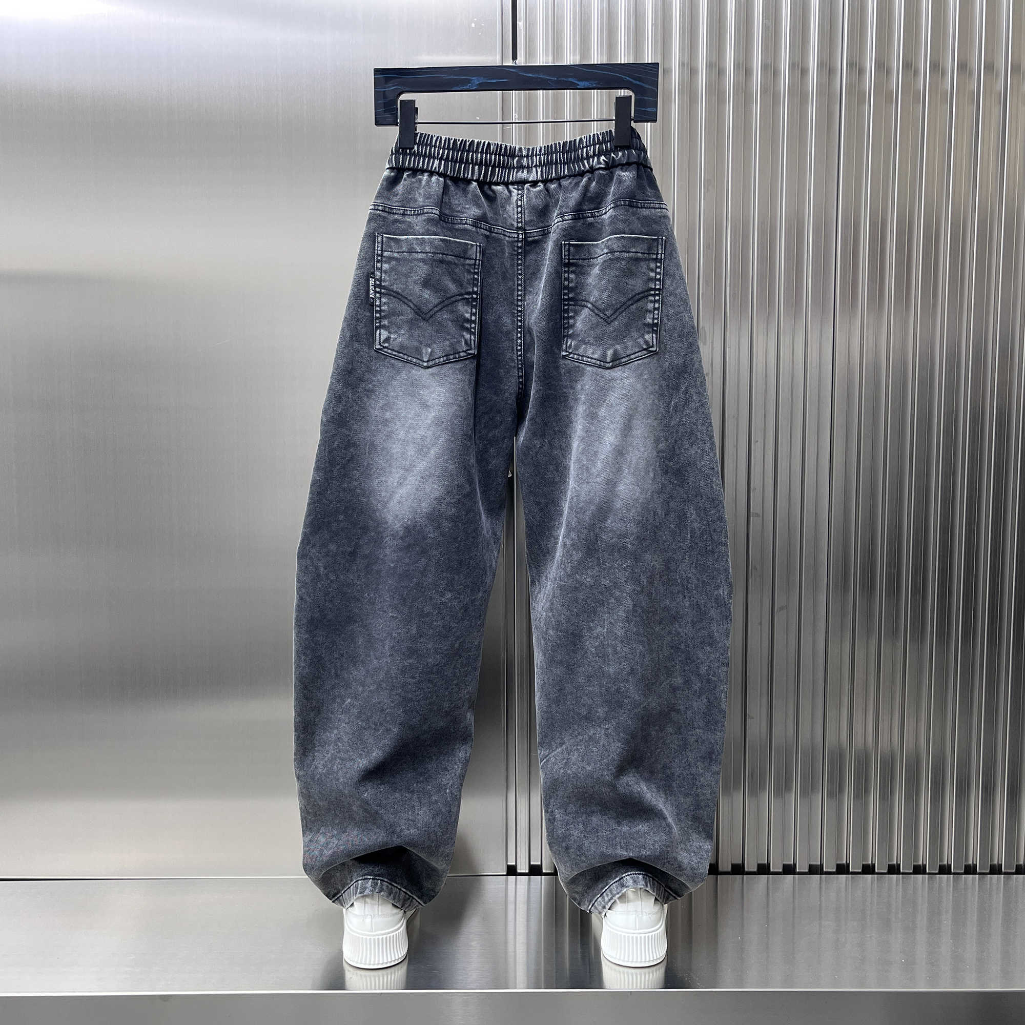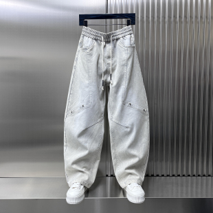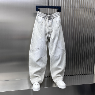 男士 2025秋季 新款 潮牌美式 宽松拼接休闲裤 痞帅水洗牛仔裤 韩版 个性